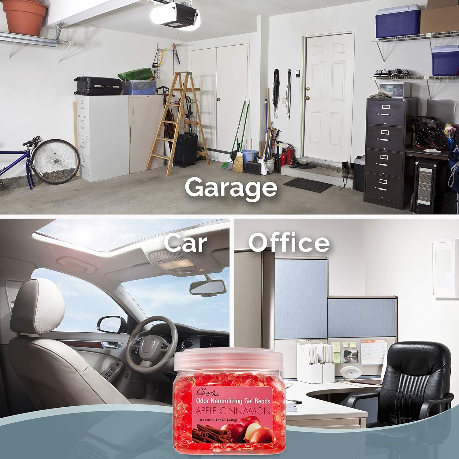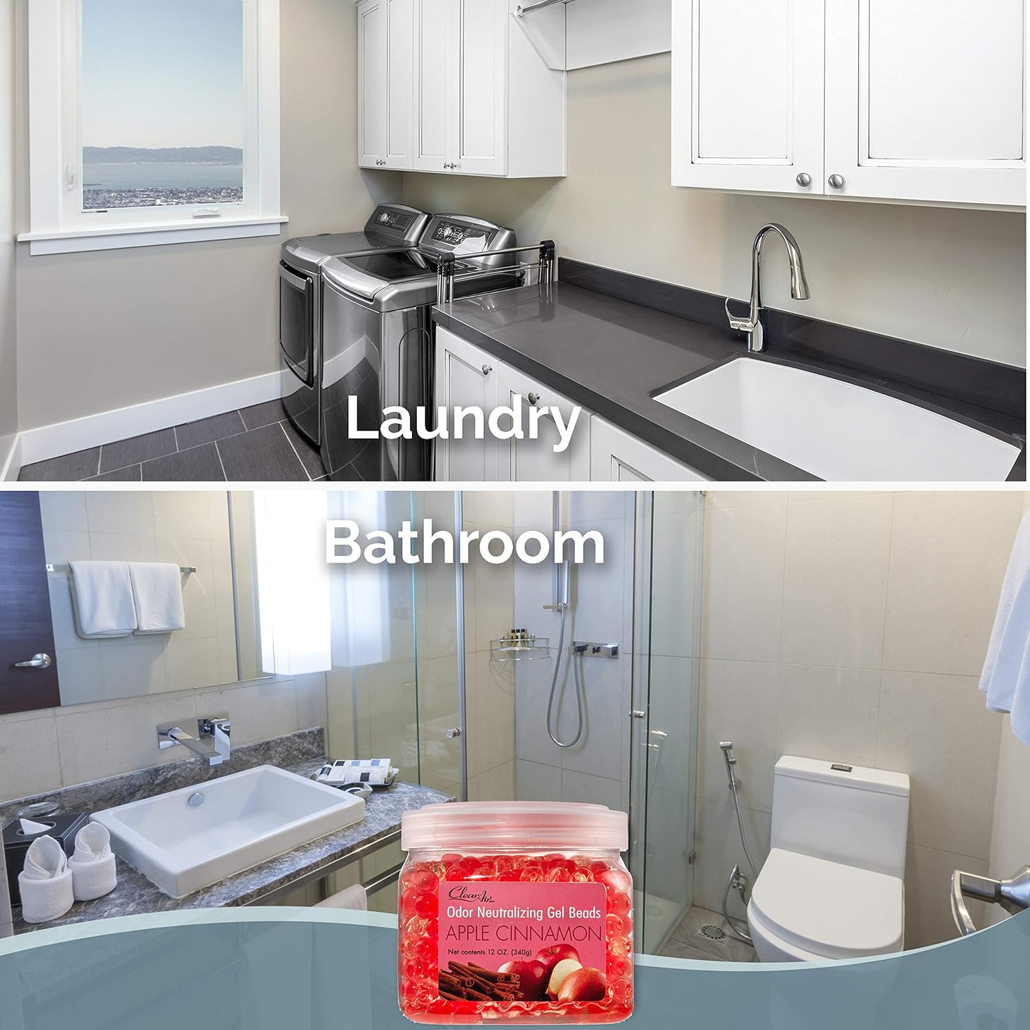 Clear Air Odor Eliminator Gel Beads - 12 oz, Pack of 2 - Air Freshener Made with Essential Oils - Eliminates Odors in Bathrooms, Cars, Boats, RVs & Pet Areas - Apple Cinnamon Scent