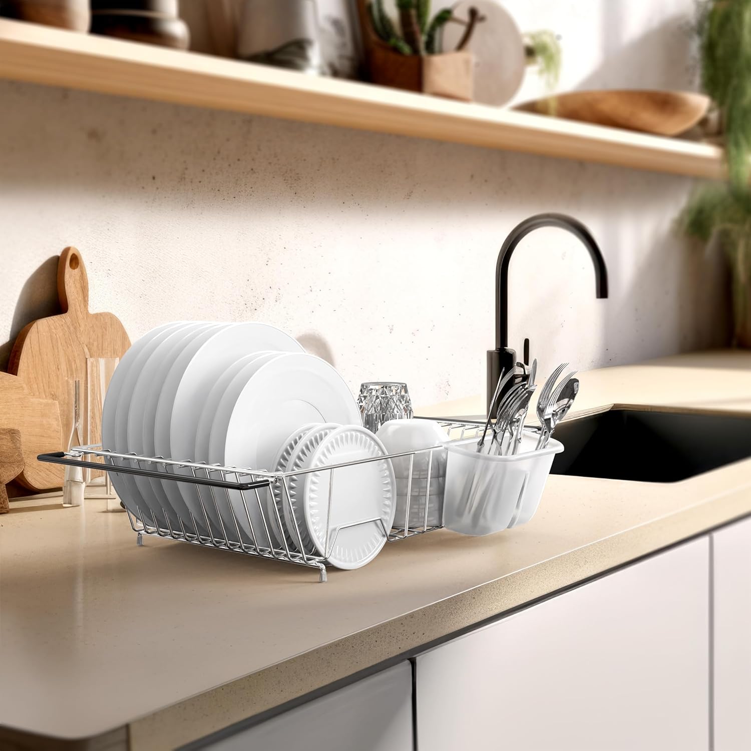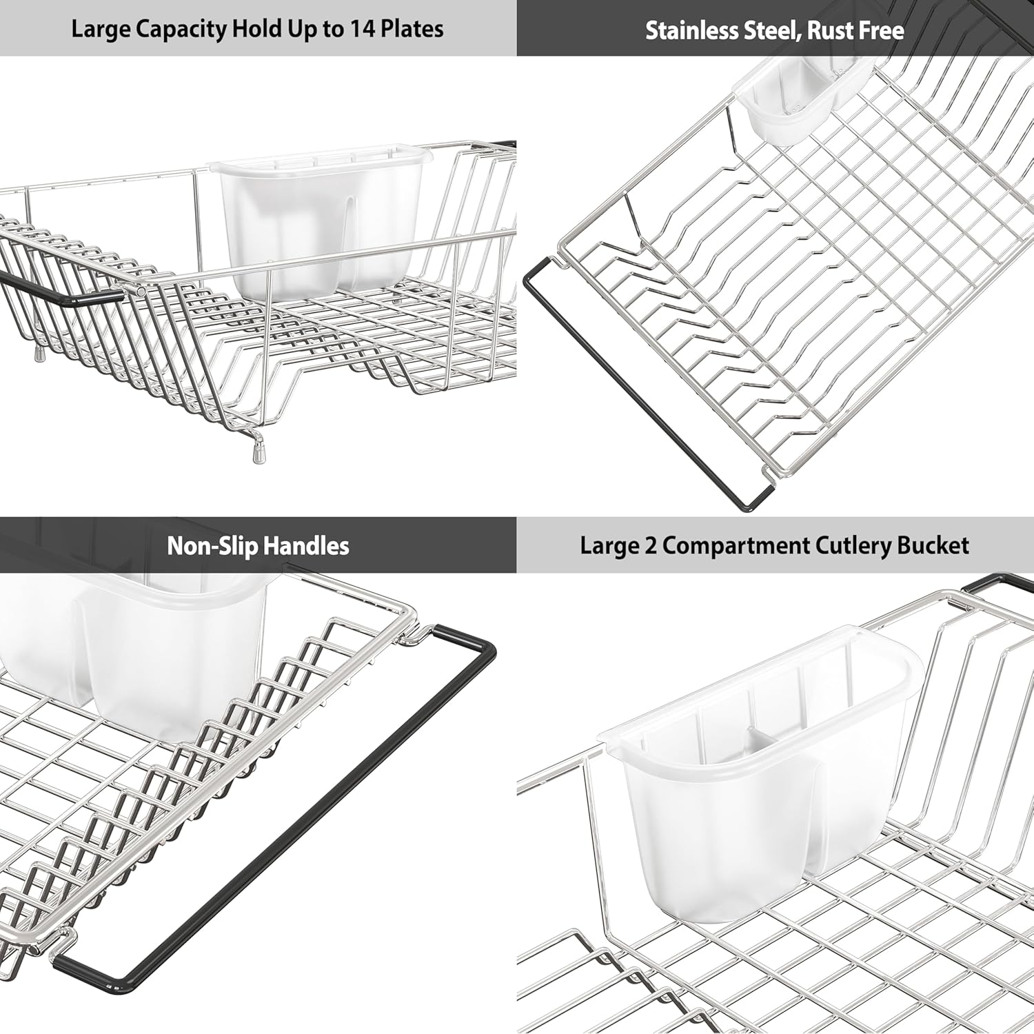 SIMPLE HOUSEWARE Large Over Sink Counter Top Stainless Steel Dish Drainer Drying Rack with Utensil Holder, Chrome