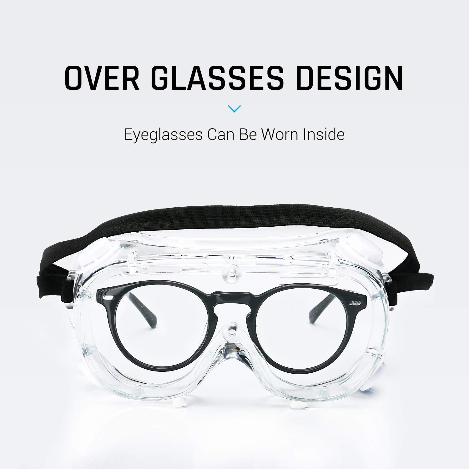 Safety Goggles Medical Goggles Fit Over Eyeglasses Anti-Fog Safety Glasses Clear Lab Goggles chemistry Protective Eyewear ANSI Z87.1