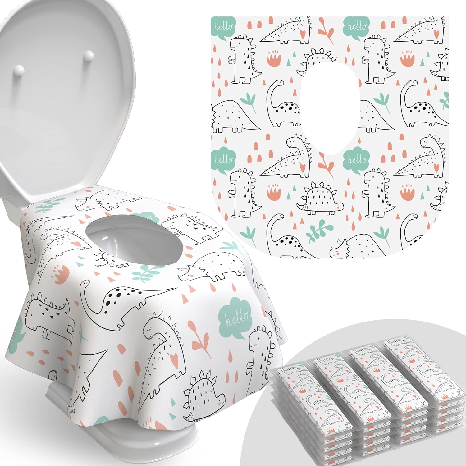 Toilet Seat Covers Disposable - 20 Pack - Waterproof, Ideal for Kids and Adults – Extra Large, Individually Wrapped for Travel, Toddlers Potty Training in Public Restrooms (Dinosaurs, 20)
