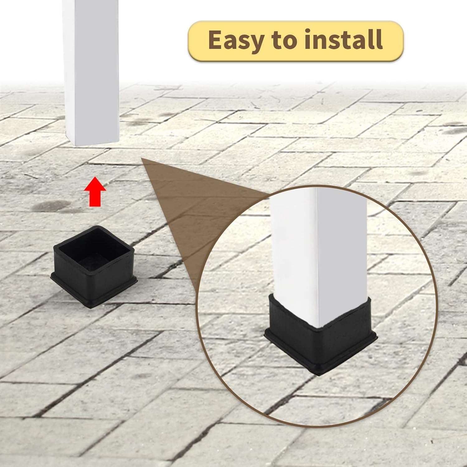 Flyshop Non-Slip Thick Rubber Leg Tips Floor Protectors Square Chair Leg Caps 20pcs, Black, 35 mm x 35 mm, 1-3/8" x 1-3/8"