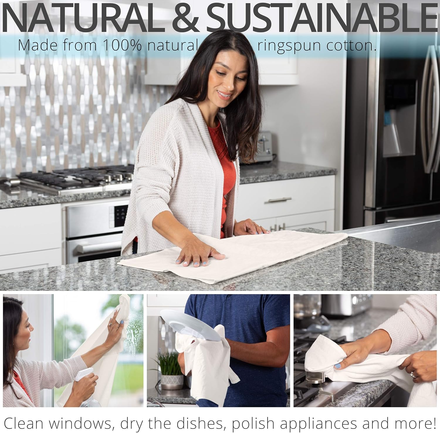 • ✅ NATURAL & SUSTAINABLE - These 100% all-natural ring spun cotton towels present unbeatable value in reusability. The towels are made for wiping and toweling just about everything in your kitchen.