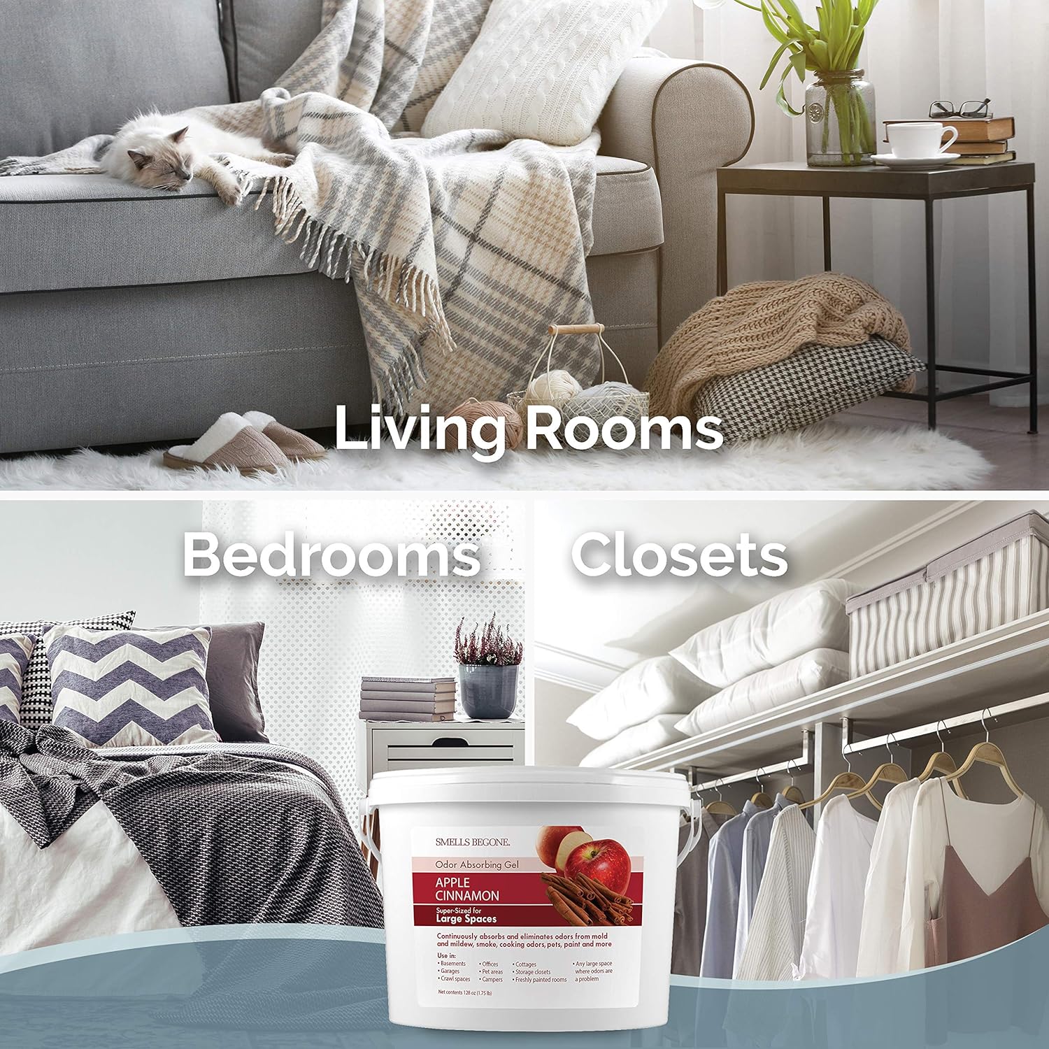SMELLS BEGONE 1-Gallon Odor Absorber Gel - Air Freshener & Odor Eliminator for Homes, Garages & Commercial Buildings - Industrial Size - Apple Cinnamon Scent