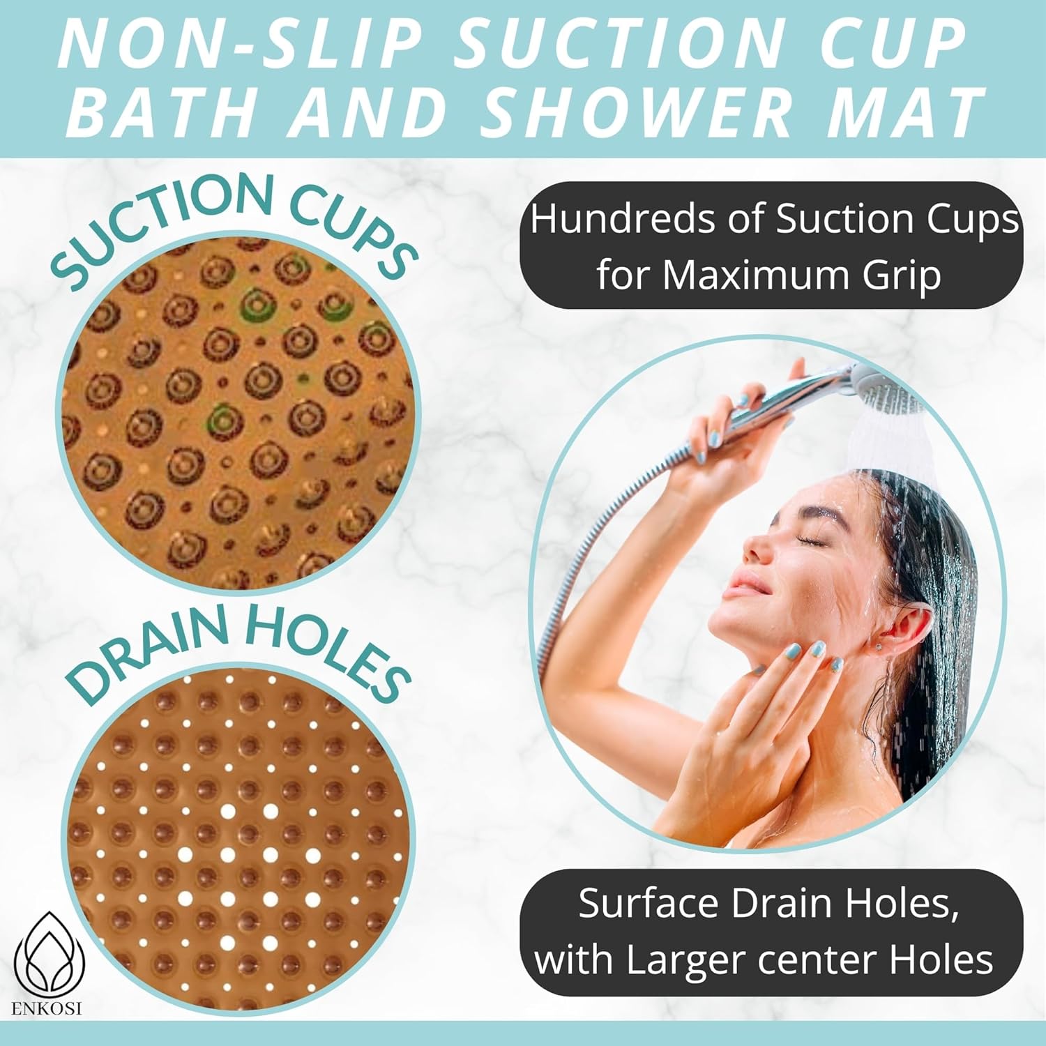 ENKOSI Bath Mat - Large Non Slip Bathtub & Shower Mat - Extra Long 40 x 16 Inch Bathroom Mats for Tub Nonslip Anti Slip Bathmats (40x16 Clear Brown 1-Pack)
