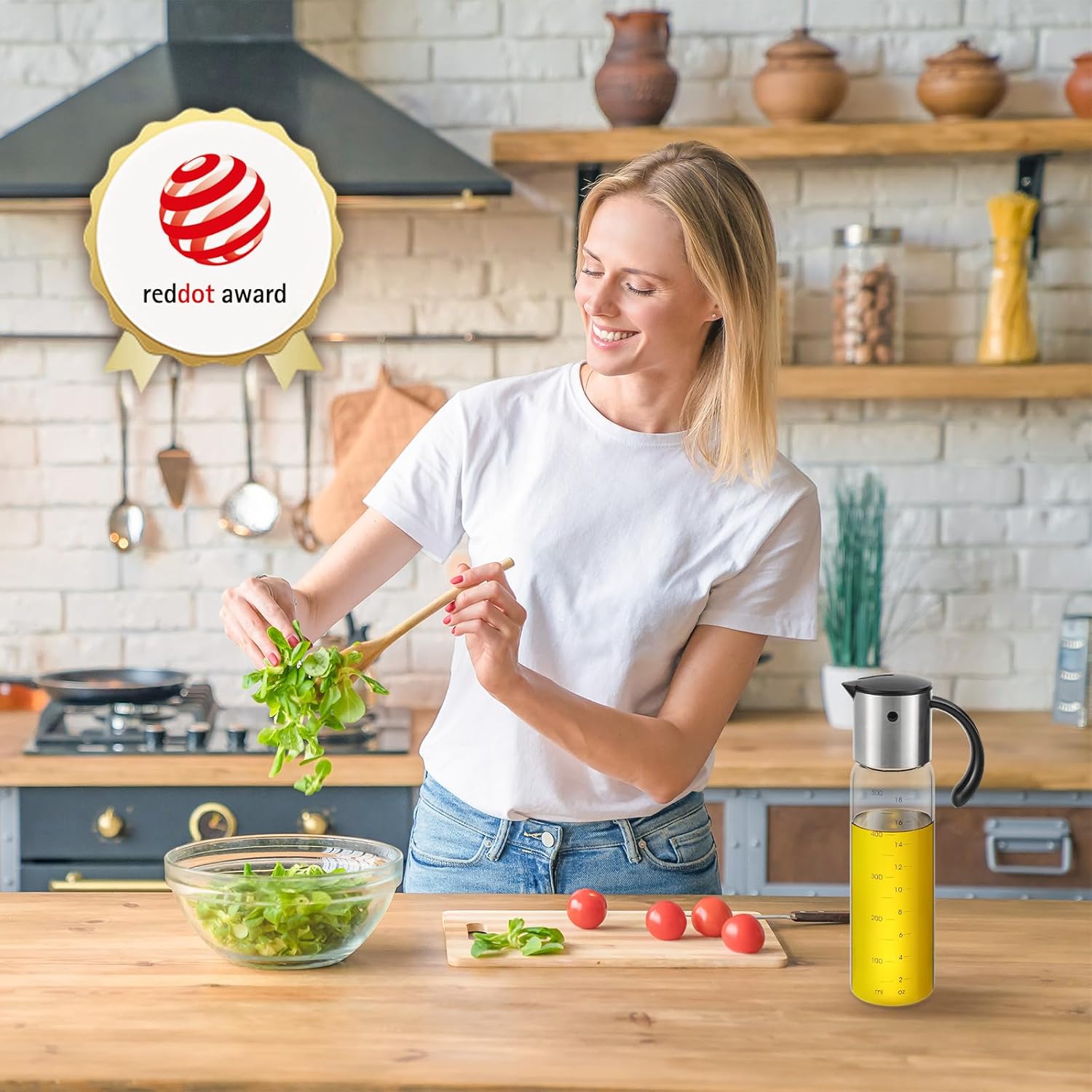 • Smart Automatic Lid Design - The gravity flip lid of Vucchini oil & vinegar dispenser bottle will open automatically when the bottle is tilted, and close when upright, allows for easy, one-handed pouring. You don't have to press by the thumb and enjoy a perfect pour every time. 18 ounce (500 ml )- large capacity olive oil dispenser for your daily use.