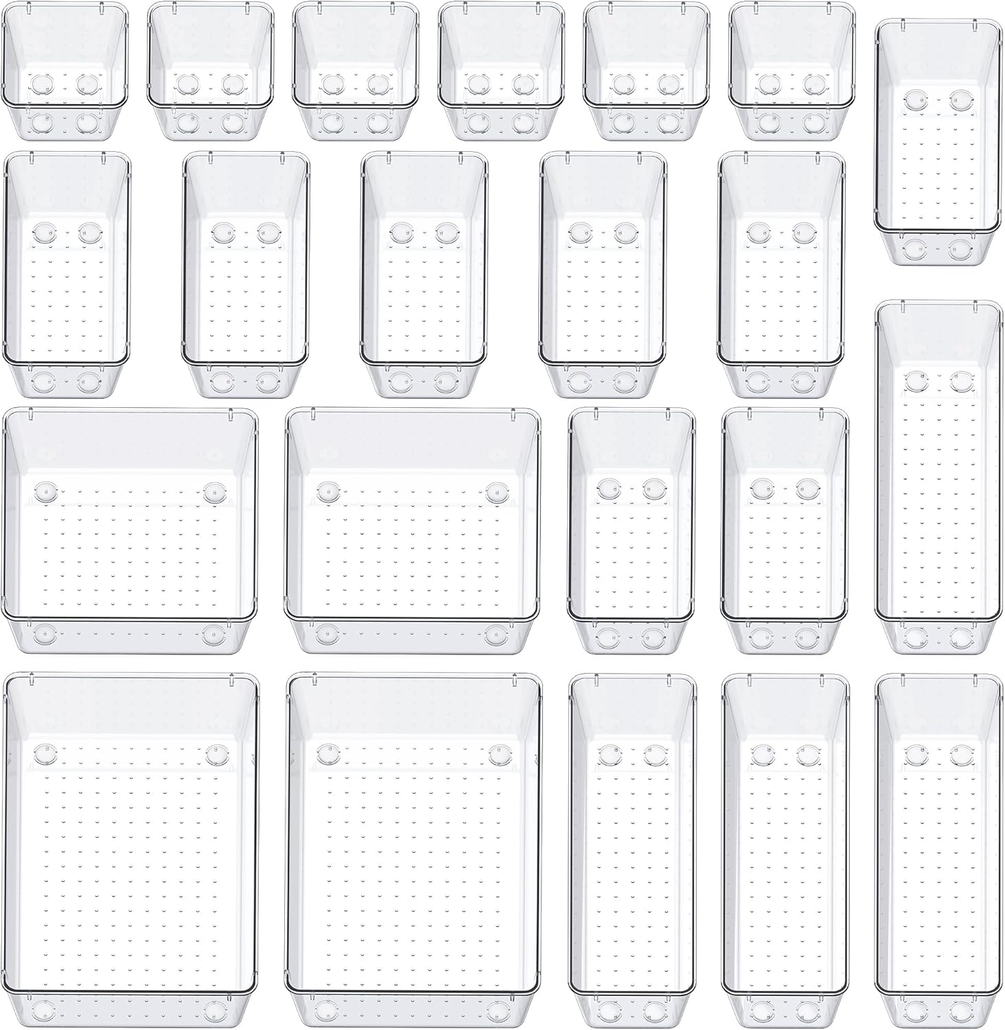 SMARTAKE 22-Piece Drawer Organizer with Non-Slip Silicone Pads, 5-Size Clear Desk Drawer Organizer Trays Storage Tray for Makeup, Jewelries, Utensils in Bedroom Dresser, Office and Kitchen, Clear