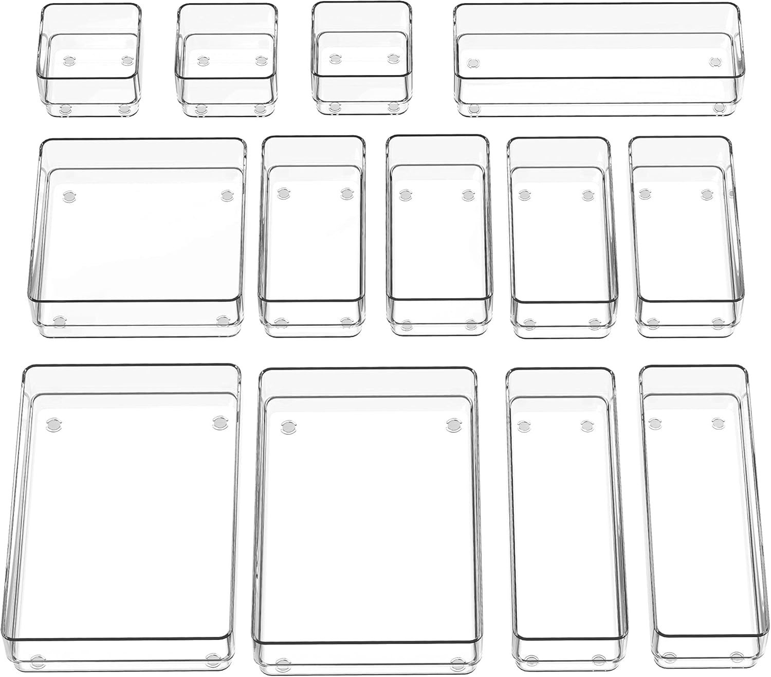 SMARTAKE 13-Piece Drawer Organizer with Non-Slip Silicone Pads, 5-Size Desk Drawer Organizer Trays Storage Tray for Makeup, Jewelries, Utensils in Bedroom Dresser, Office and Kitchen (Clear)