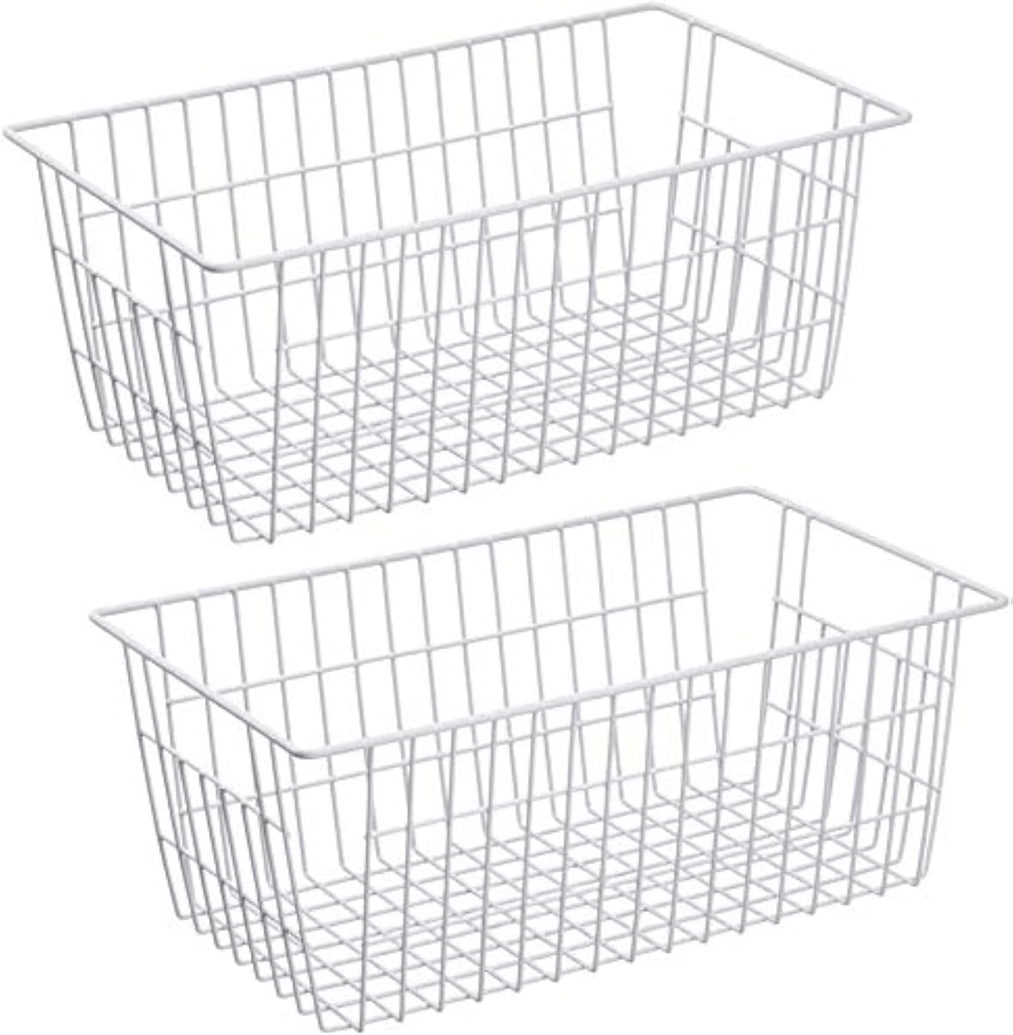 Slideep Freezer Baskets Farmhouse Organizer Storage Basket with Handles, Food Storage Bin for Kitchen Cabinets, Pantry, Closet, Bedroom, Bathroom, Office, 2 Pack, White