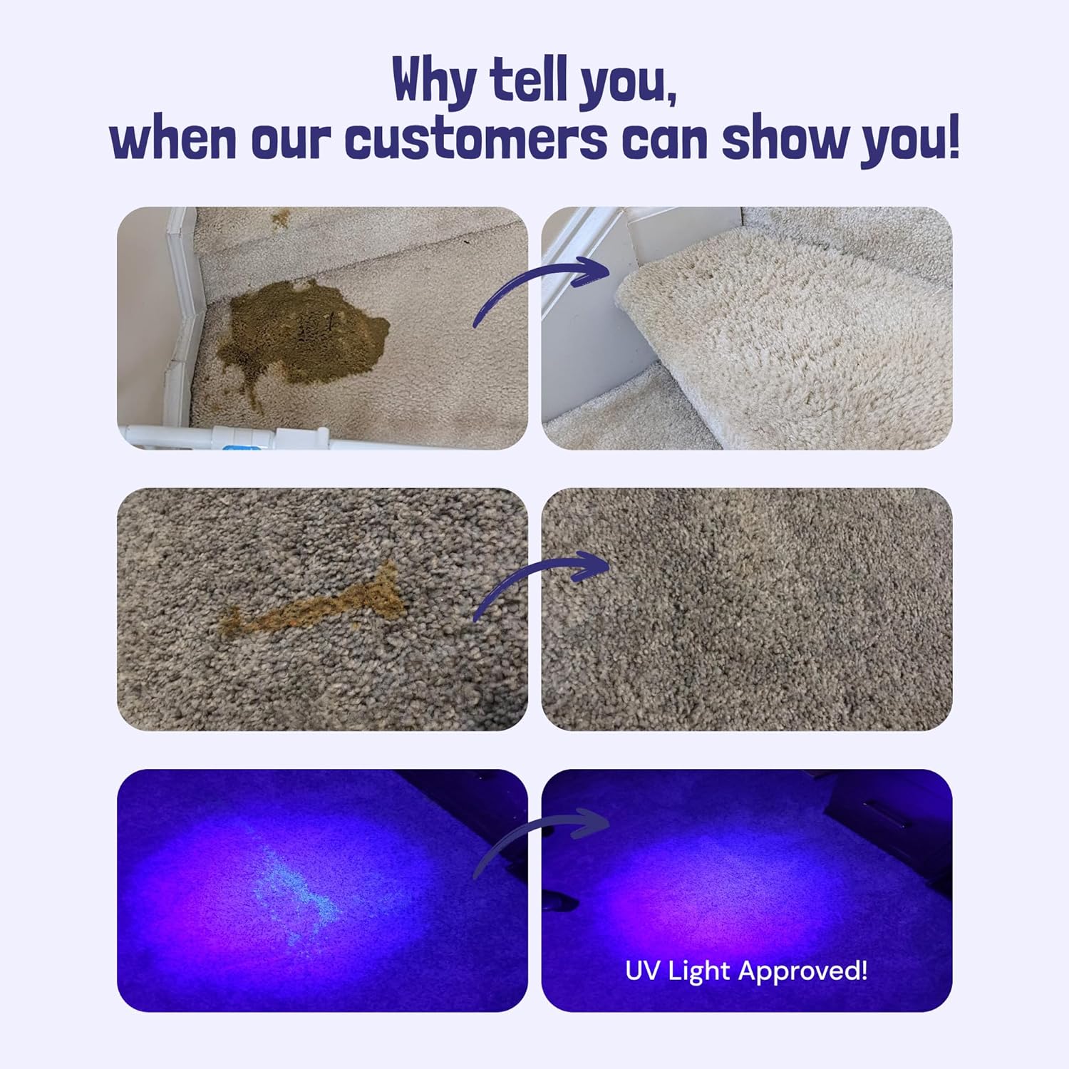 • Safe and Gentle: Feel good about using a pet carpet cleaner spray that's gentle on your family and furry friends. The clean ingredient formula of this carpet stain remover spray keeps your home free from harsh odors, perfect for holiday gatherings or cozy nights with your pets