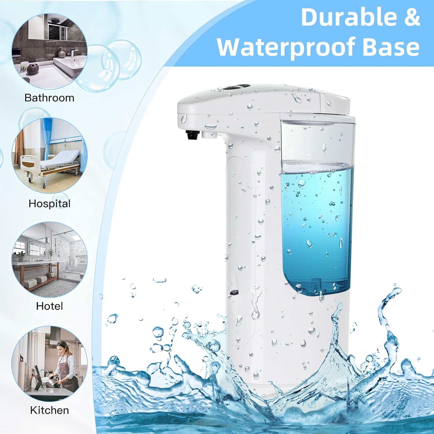 • 【Large Capacity】: The smart soap dispenser with 400ml/13.5oz high capacity can wash our hands more than hundreds of times on a single fill. In high-use bathrooms and kitchens, we reduced the number of frequent soap refills a lot!