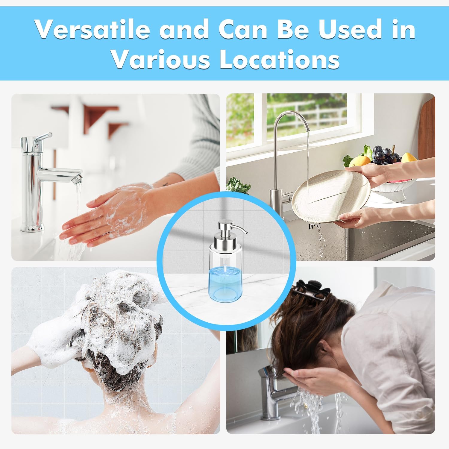 Thick Glass Soap Dispenser with Rust Proof Stainless Steel Pump, Clear Foam Soap Dispenser with Wide Opening for Kitchen and Bathroom(15 Oz)