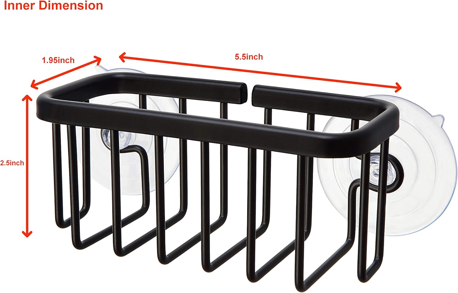 SunnyPoint NeverRust Kitchen & Bathroom Sink Caddy for Sponges, Scrubbers, Soap, 6" x 2.5" x 2.75", with Adhesive Mount - Additional Suction Cup Included –Aluminum (Black)