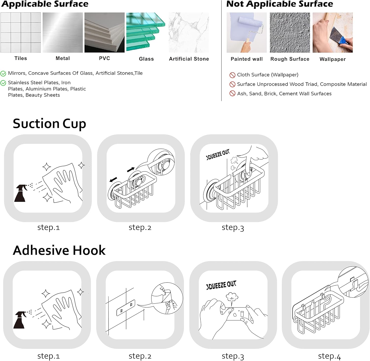 • Important Compatibility Notice: Suction cups are only effective on smooth, non-porous surfaces such as polished tile, stainless steel, or glass. Does NOT stick well to stone, cement, granite, Silgranit, marble, or textured surfaces. Use included adhesive pad for those surfaces.