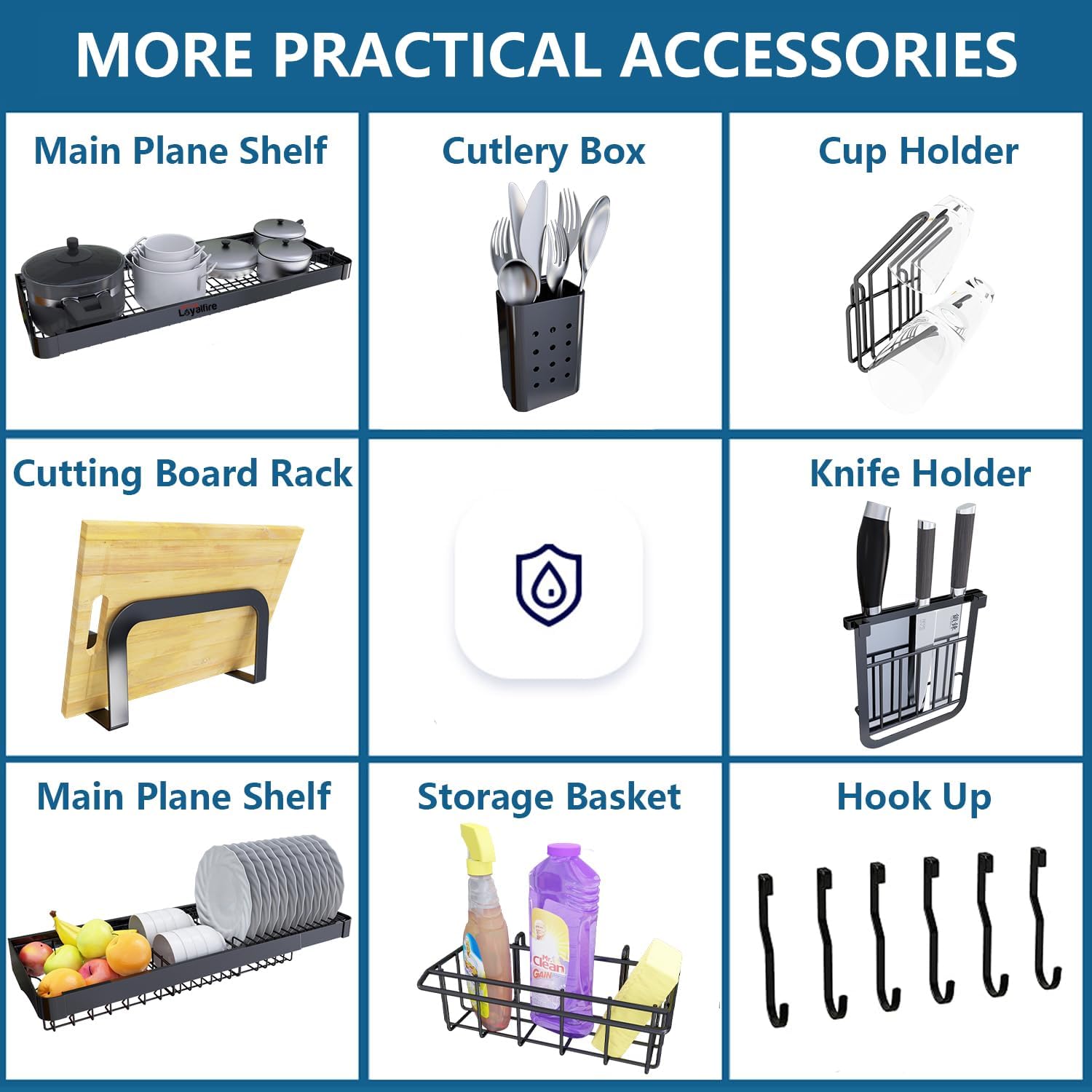 - ORGANIZE YOUR KITCHEN & EFFICIENT DRAINAGE: can meet the needs of any kitchenware. While the over the sink design enables it to drain water directly into the sink, effectively avoiding water pooling. Besides, the non-slip mat on the bottom effectively ensure the stability of the dish rack. All the accessories you need are complete, including knife holder, storage basket, cutlery holder, cutting board rack, cup hanging, hook up. (All accessories are made of stainless steel)