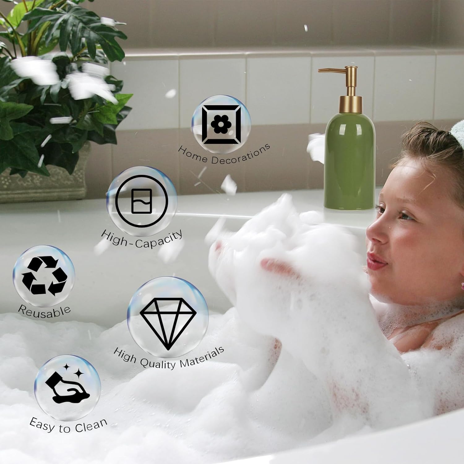 Natheeph 14OZ Ceramic Soap Dispenser Ceramic Soap Pump Dispenser Can Fill Liquid for Bathroom/Kitchen (Green)