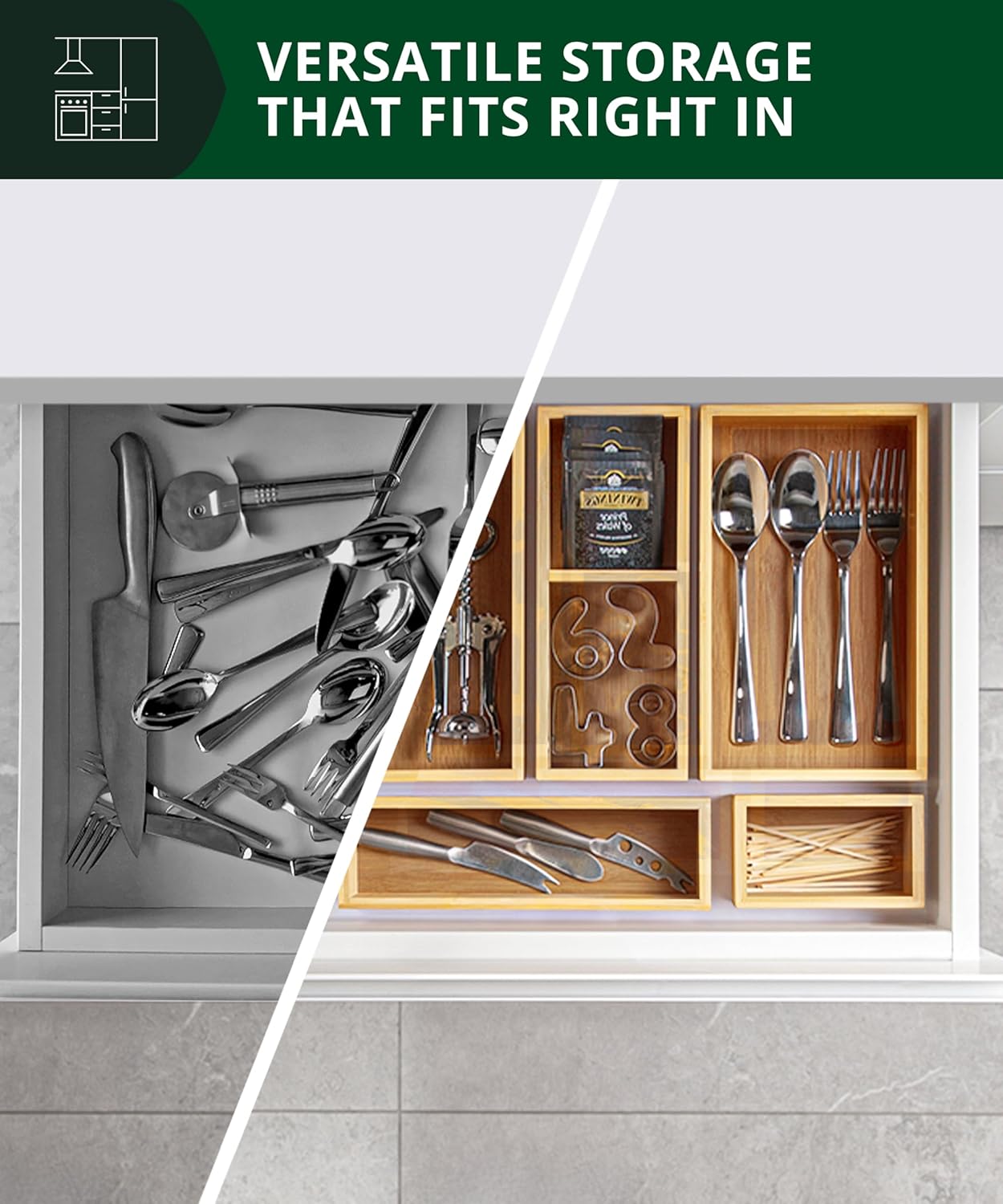 - ๐ด๐ผ๐ณ๐ป๐ฐ-๐ผ๐บ๐ฌ ๐บ๐ป๐ถ๐น๐จ๐ฎ๐ฌ ๐ฉ๐ถ๐ฟ๐ฌ๐บ ๐บ๐ฌ๐ป: Declutter your home, office, desk, closet, bathroom, kitchen, and more with our wooden boxes, the perfect makeup organizer, jewelry organizer, bathroom and vanity organizer. Tidy up any drawer, keeping spare batteries and charging cables together, or organize office supplies such as pencils, clips, and sticky notes. Set these convenient pieces any way youโd like to create the best fit to your drawer and keep your accessories from getting jumbled together