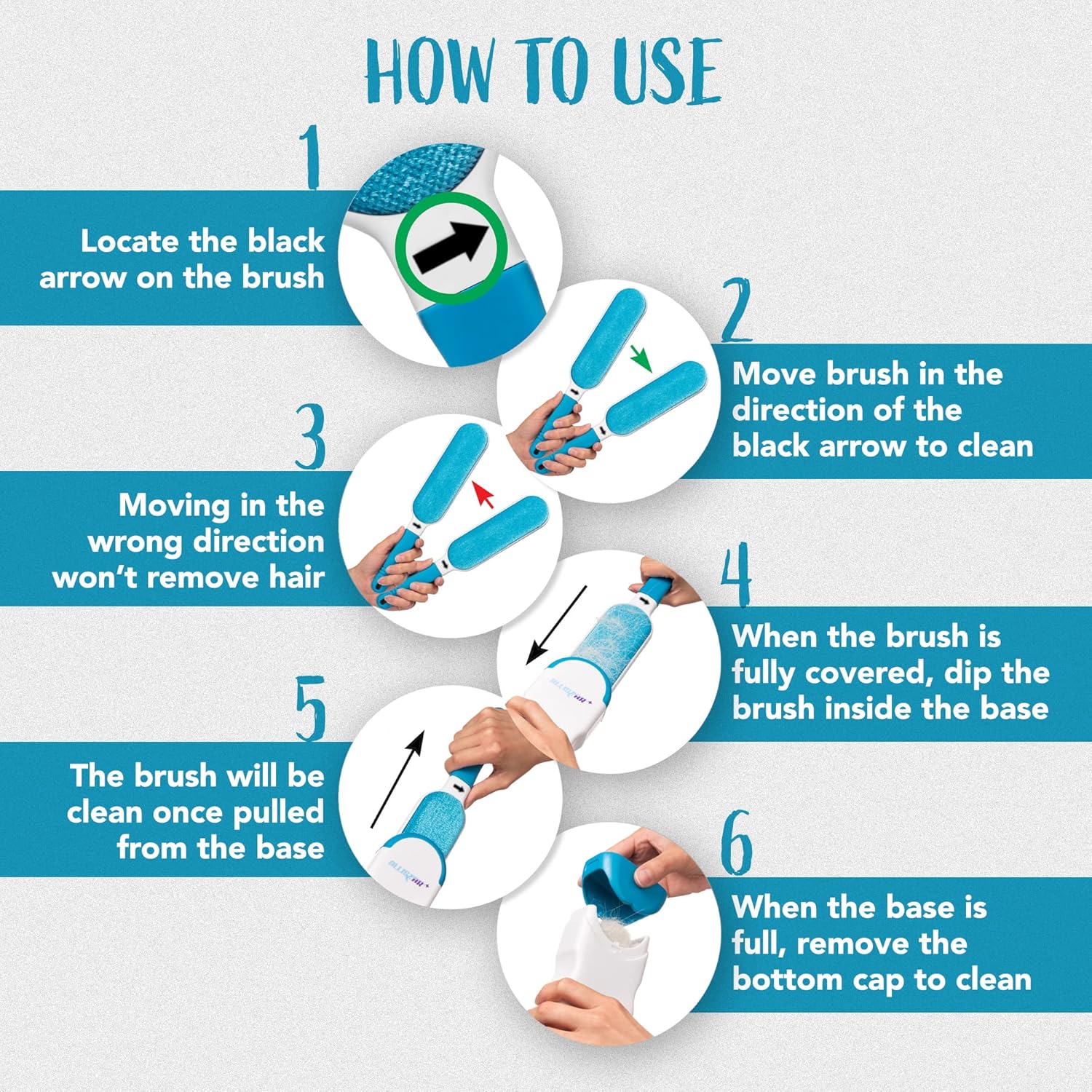 • SIMPLE TO USE - Effortlessly remove pet hair and lint from on a variety of surfaces including clothing, laundry, upholstered fabric, bedding, lamp shades, car seats, furniture and more. Follow the arrows on the brush to instantly remove fur, dust, lint, and hair.