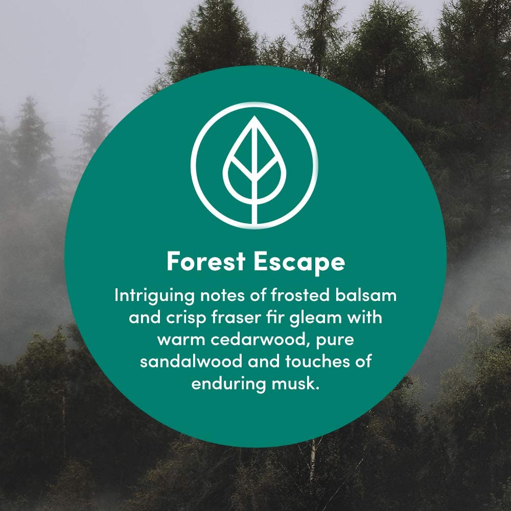 • IRRESISTIBLE NATURE-INSPIRED FRAGRANCE: Forest Escape is made out of intriguing notes of frosted balsam and crisp fraser fir gleam with warm cedarwood, pure sandalwood and touches of enduring musk.