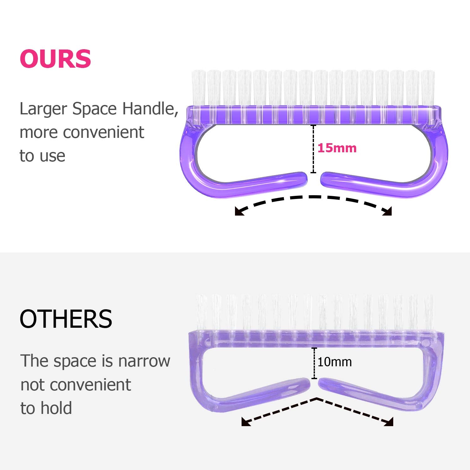 • 【New Design】: We have made some improvements. The Handle fingernail brushes have a larger gripping space, much easier to hold and convenient to use.