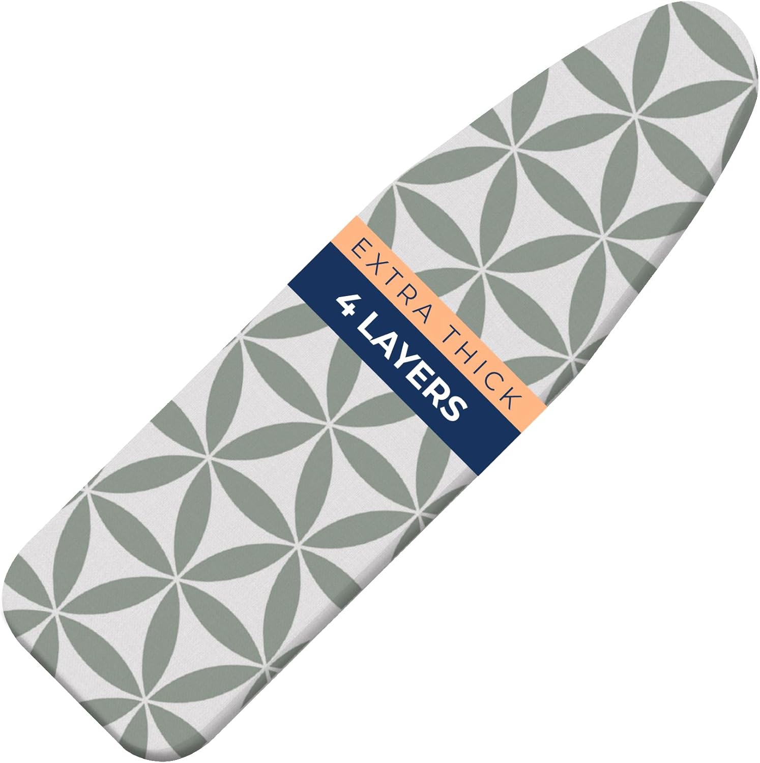- 4 LAYERS EXTRA THICK PADDING FOR REMARKABLE DURABILITY - 4 layers heavy duty padding provides exceptional durability to ironing board cover and pad. Top layer (1st) is extremely scorch and stain resistant cotton fabric. Felt padding (2nd) provides extra heat resistant structure. Eco foam (3rd) provides better steam circulation. Durable and thick felt lining (4th) will maintain a flat shape during ironing.