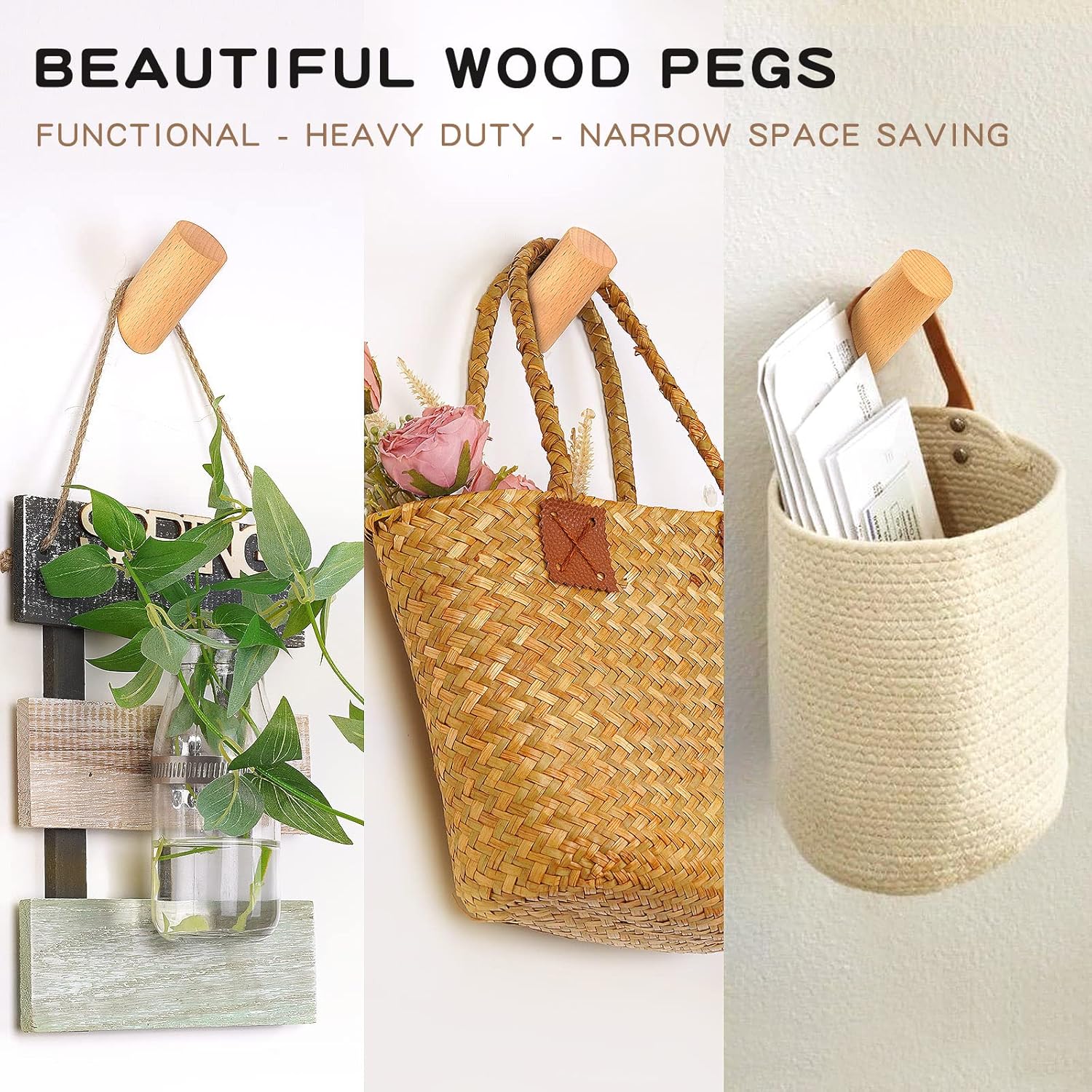 - MODERN WOOD HOOK: 100% beech wood wall hook, nice wood grain, handcrafted with care for long lasting use, finished with natural wood oil, which is healthy and friendly, and better protects the wooden hooks. Simple wood hook, but upgrade living to any home
