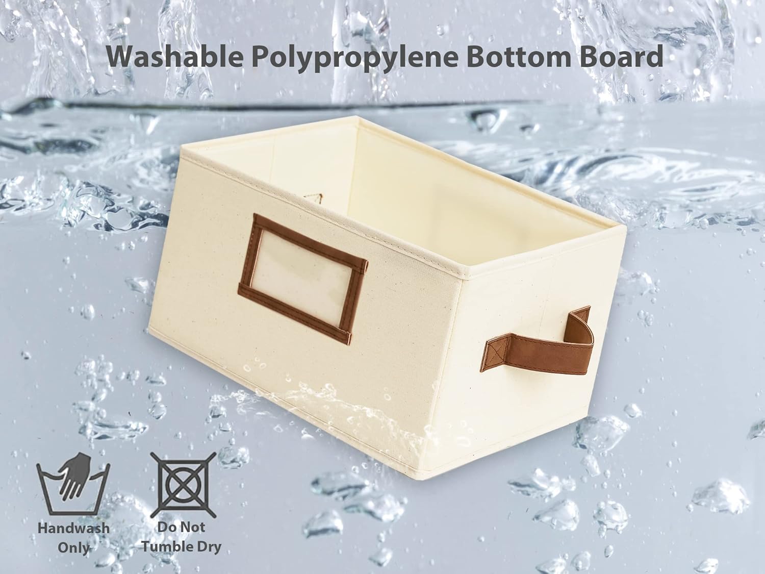 • Storage baskets with two sewn-in PU handles for easy carrying around, and the label holder for easy marking and identifying the items inside.