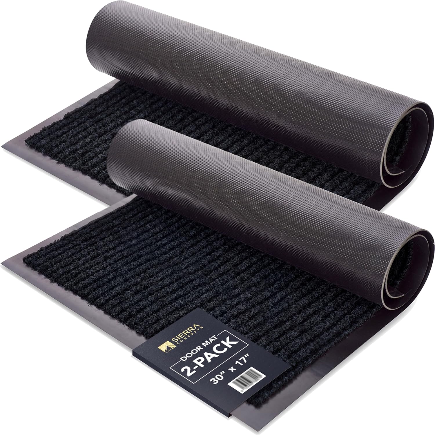 Sierra Concepts 2-Pack Front Door Mat Ribbed Black - Indoor Outdoor Floor Doormat Entryway Welcome Mats - Entrance Shoe Scraper, Entry Inside Outside Garage, 30" x 17"