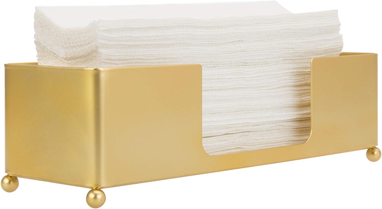 • Modern brass tone metal tabletop paper towel holder dispenser perfect for stylishly storing paper towels in any home, office, restaurant or retail bathroom setting