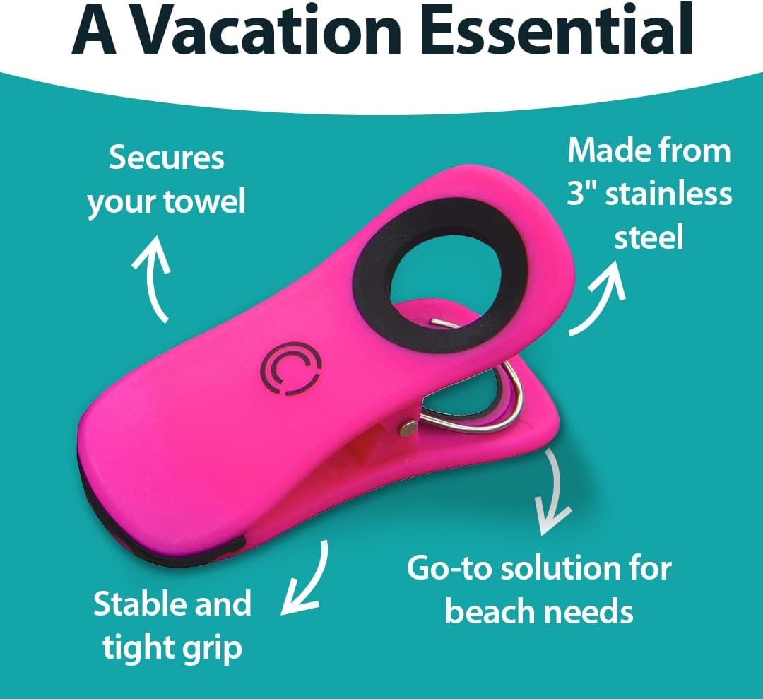 - MORE THAN JUST A TOWEL CLIP. Maximize utility with these versatile large clips. Use them on the boat to secure gear, on the balcony to dry swimsuits and clothes, or in the pantry as heavy-duty chip clips. From pool days to camping trips, find endless uses for a truly multi-purpose tool.