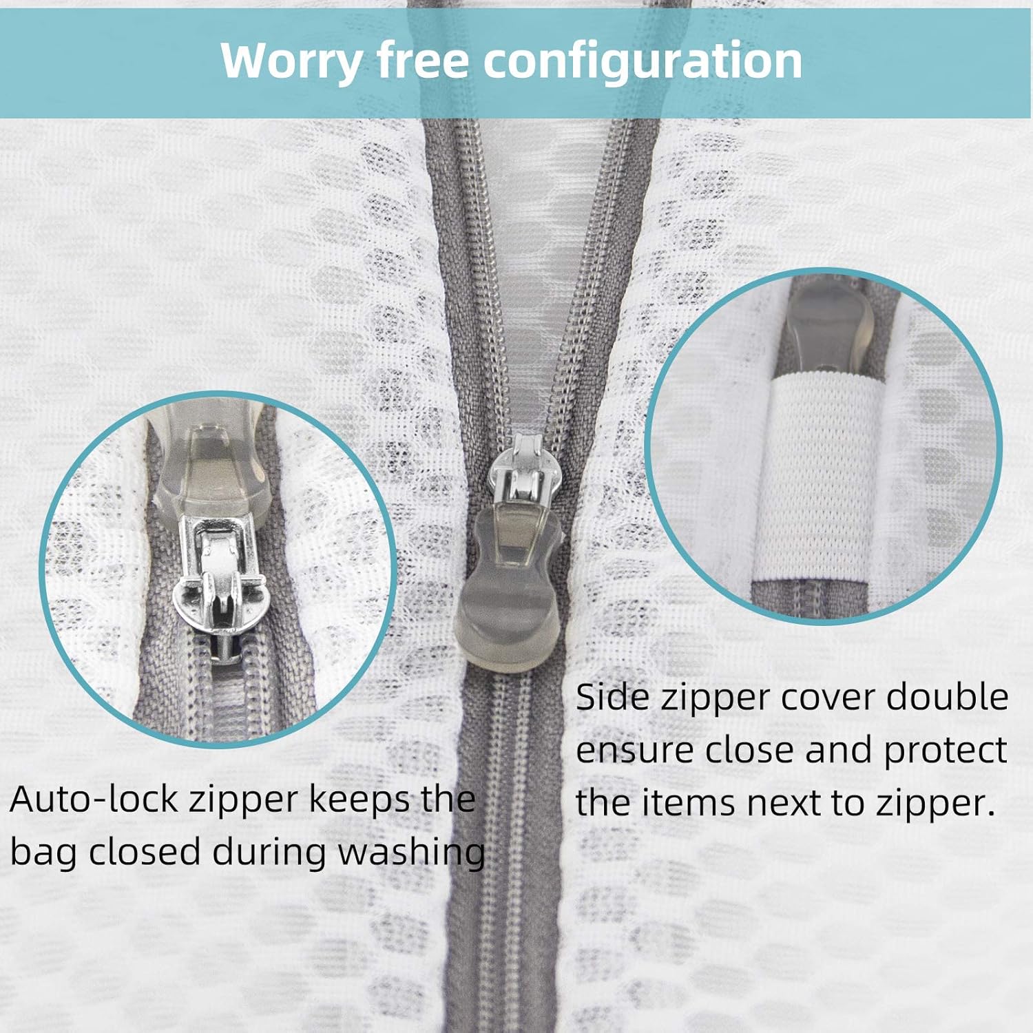 • Great lingerie bags has auto-lock zipper and side elastic band keeping the laundry bags closed when washing and drying. For better cleaning and drying, please do not put the clothes exceed two thirds of the bag's capacity