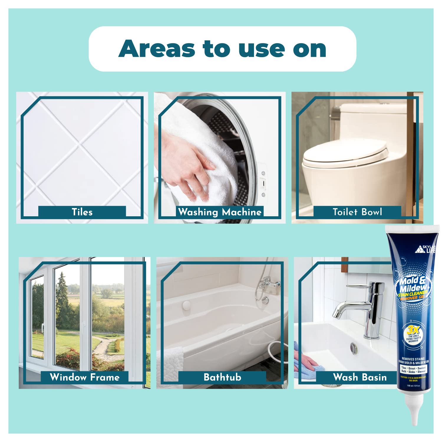 Skylarlife Home Mold & Mildew Remover Gel Stain Remover Cleaner Wall Mold Cleaner for Tiles Grout Sealant Bath Sinks Showers (3-Pack)