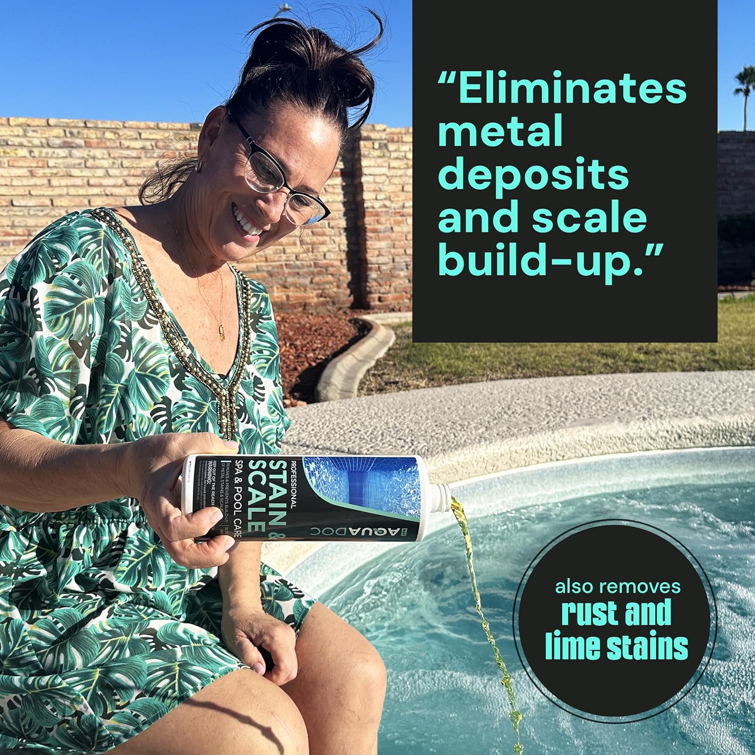 Spa Stain and Scale Control for Hot Tubs, Scale Metal & Stain Control for Hot Tubs, Prevent & Remove Stains in Hot Tubs with Our Hot Tub Water Softener & Spa Descaler Chemical - AquaDoc 32oz