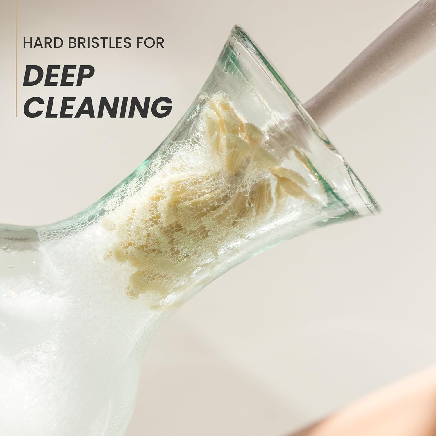 Vigar Zeroline 10.2" Long Bamboo Dish Brush, Ideal Dish Brush for Cups, Wine Glass, Tumbler, Blender Bottles, and Glass Water Bottles for The Kitchen
