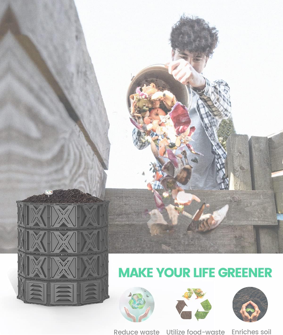 • CLOSED-LOOP COMPOSTING - With this Large Compost bin, you can have your own household composting systems.Put aside food scraps for composting system instead of going to the trash can.