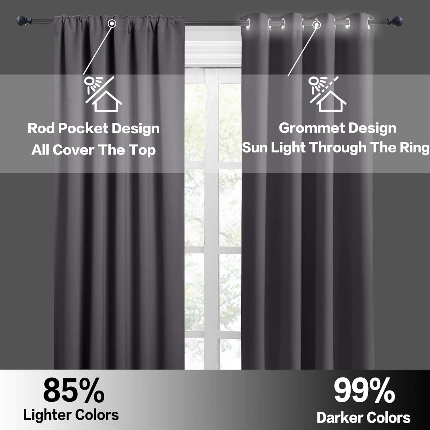 RYB HOME Blackout Curtains for Bedroom, Small Window Valances Tiers Curtain Set Light Block Privacy Drapes for Kitchen Kids Nursery Bathroom, W 52 x L 36 per Panel, Grey, 1 Pair