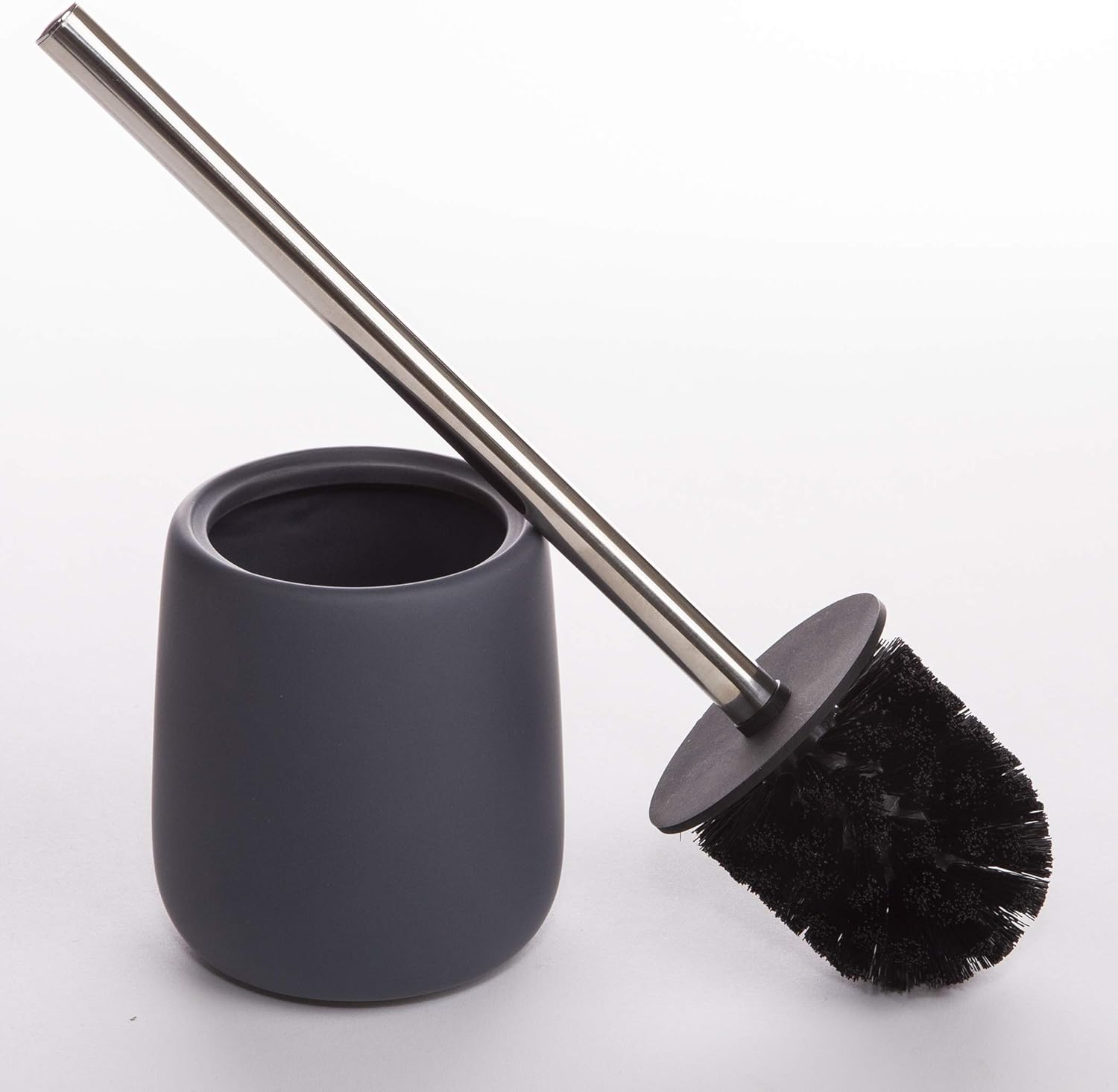 BINO | Toilet Brush with Holder Silicone Coated Ceramic, Grey | Toilet Bowl Brush and Holder Bowl | Bathroom Cleaner