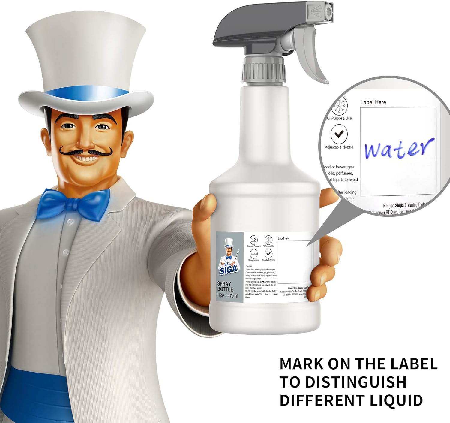 • REUSABLE & LONG LASTING: Our spray bottle is manufactured with premium quality, it is durable, hygienic, non-toxic and reusable. Features measurements on the bottle which make it easier to see how much contents remain inside. The 16 oz capacity holds enough liquid to complete your job without carrying around a larger heavier bottle. Mark on the label of spray bottle to distinguish different liquid.