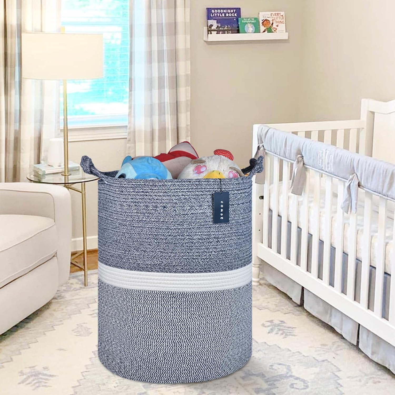 COMSE Extra Large Blanket Basket, Tall Woven Storage Basket, Nursery Hamper, 15.7”x 21.7”, Cotton Rope Laundry Hamper for Toys Clothes Towels, Blend Navy Blue/White