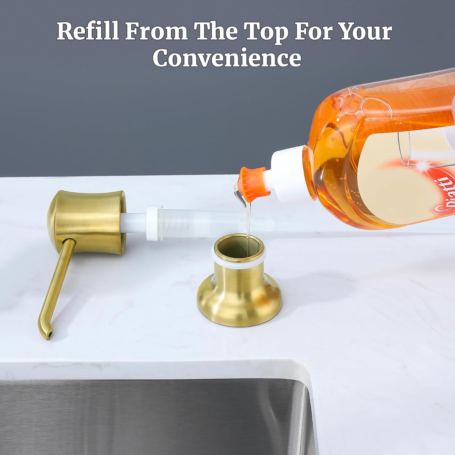 Brushed Gold Sink Soap Dispenser for Kitchen Sink (Gold Brushed),Dish & Hand Liquid Soap Dispenser,Built-in & Refill from Top Type