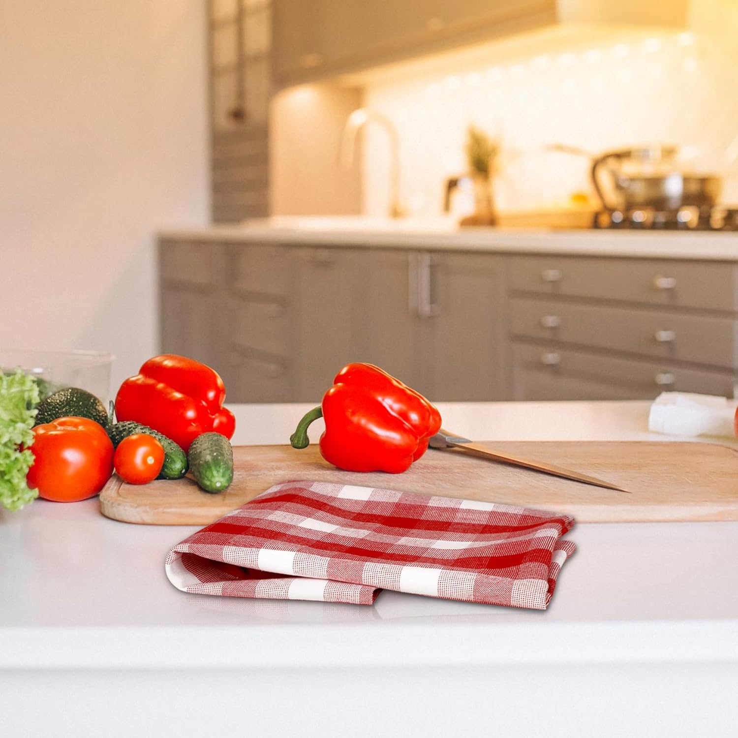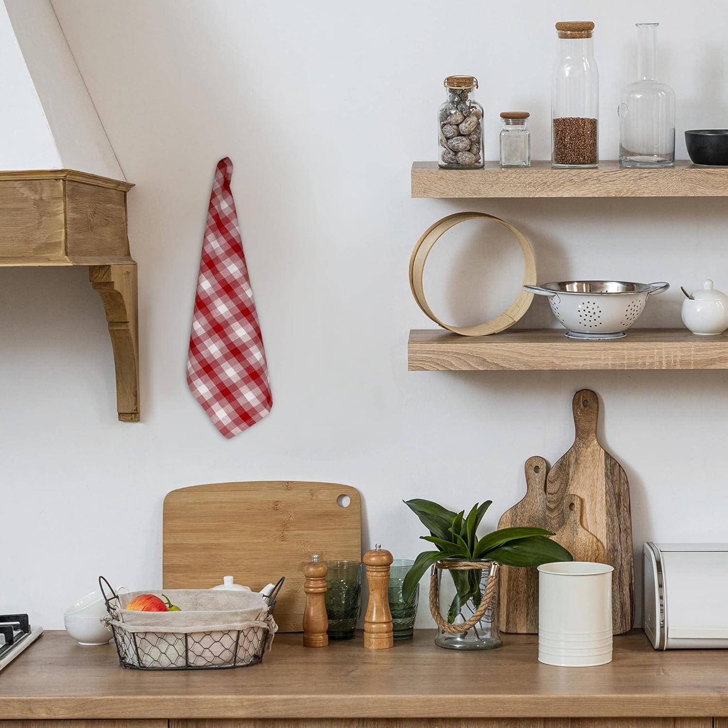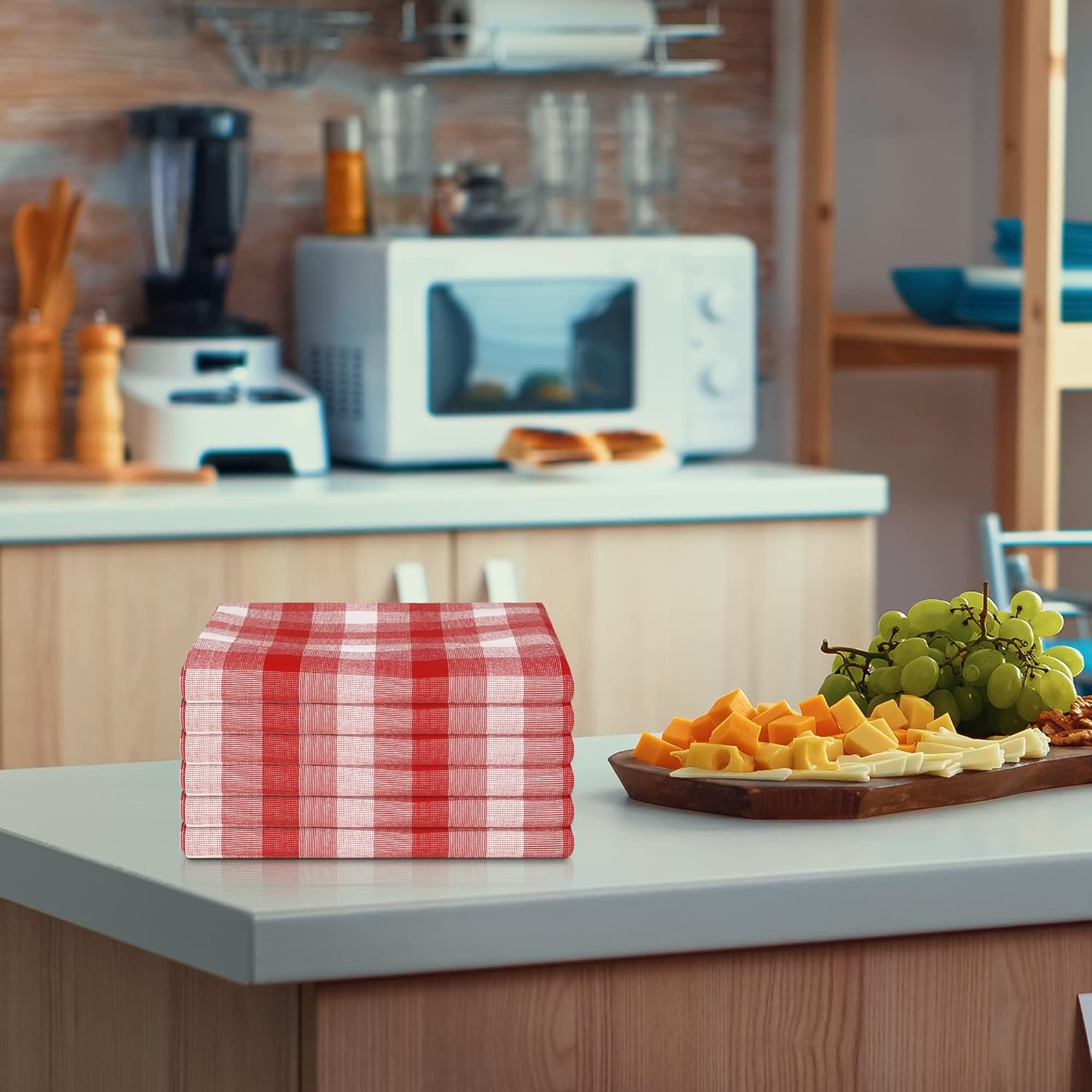 Kitchen Towels Set of 6 Soft Premium Cotton Highly Absorbent Dish Towels 20X30 Inches, Washable & Reusable Tea Towel, Quick Drying Dish Cloths for Cleaning Dishes - Red/White, Checks