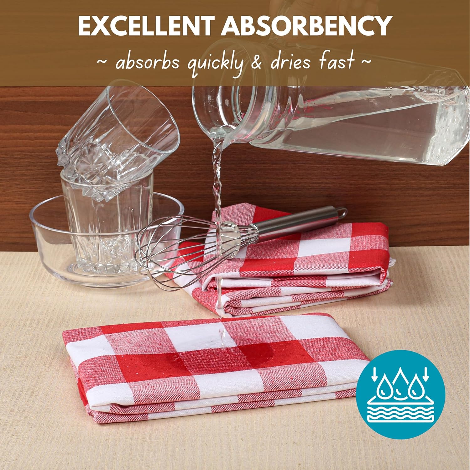 Native Fab 12-Pack Kitchen Towel with Hanging Loop 16x26 inches, Cotton Buffalo Check Kitchen Towels for Cleaning Drying, Washcloths Soft & Absorbent Cloth Rags, Bar Towel, Dish Cloth, Red