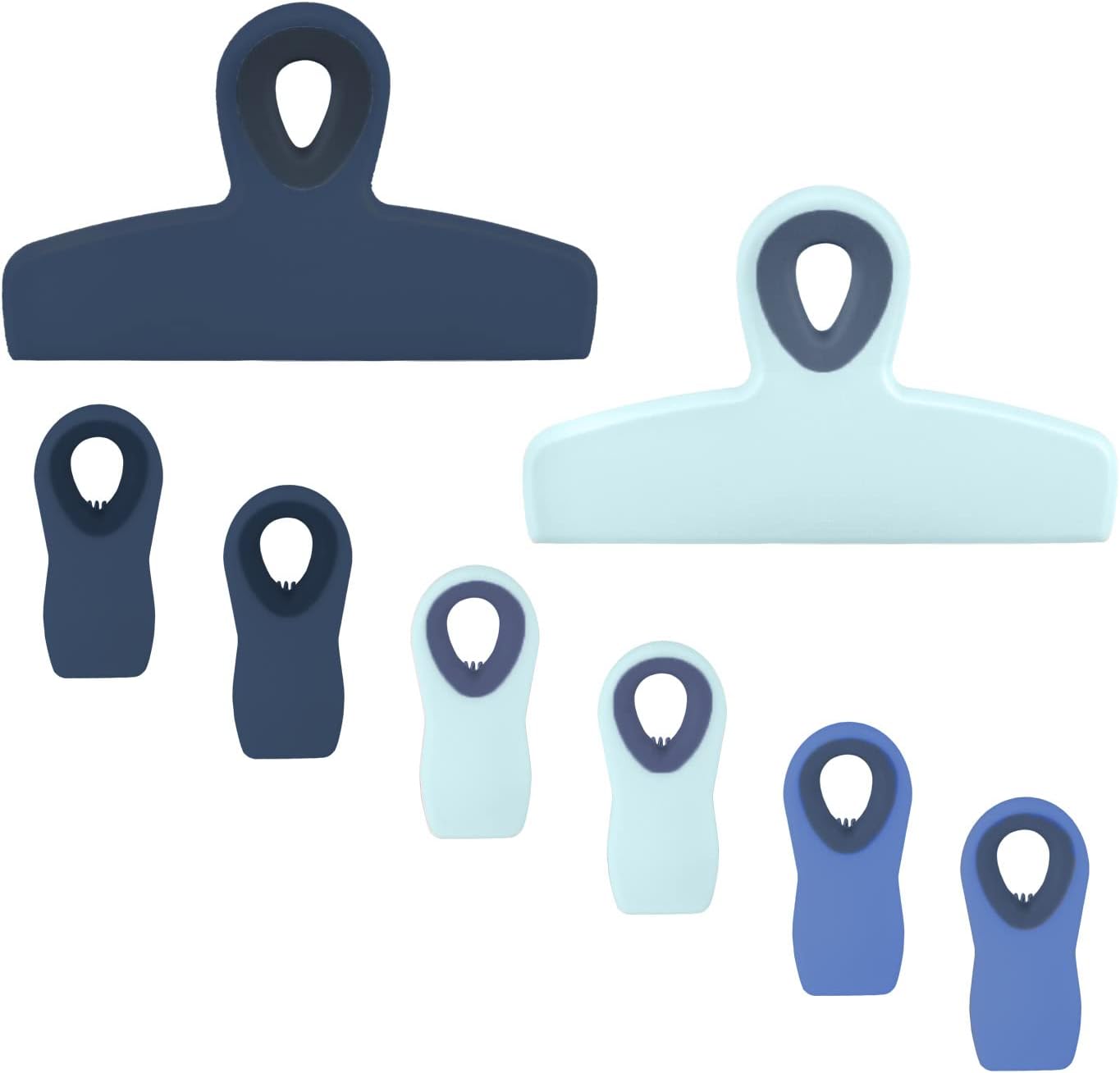 COOK WITH COLOR Bag Clips - Heavy Duty Chip Clip and Refrigerator Magnet Clips for Food Storage with Air Tight Seal Grip, Blue Ombre, Pack of 8