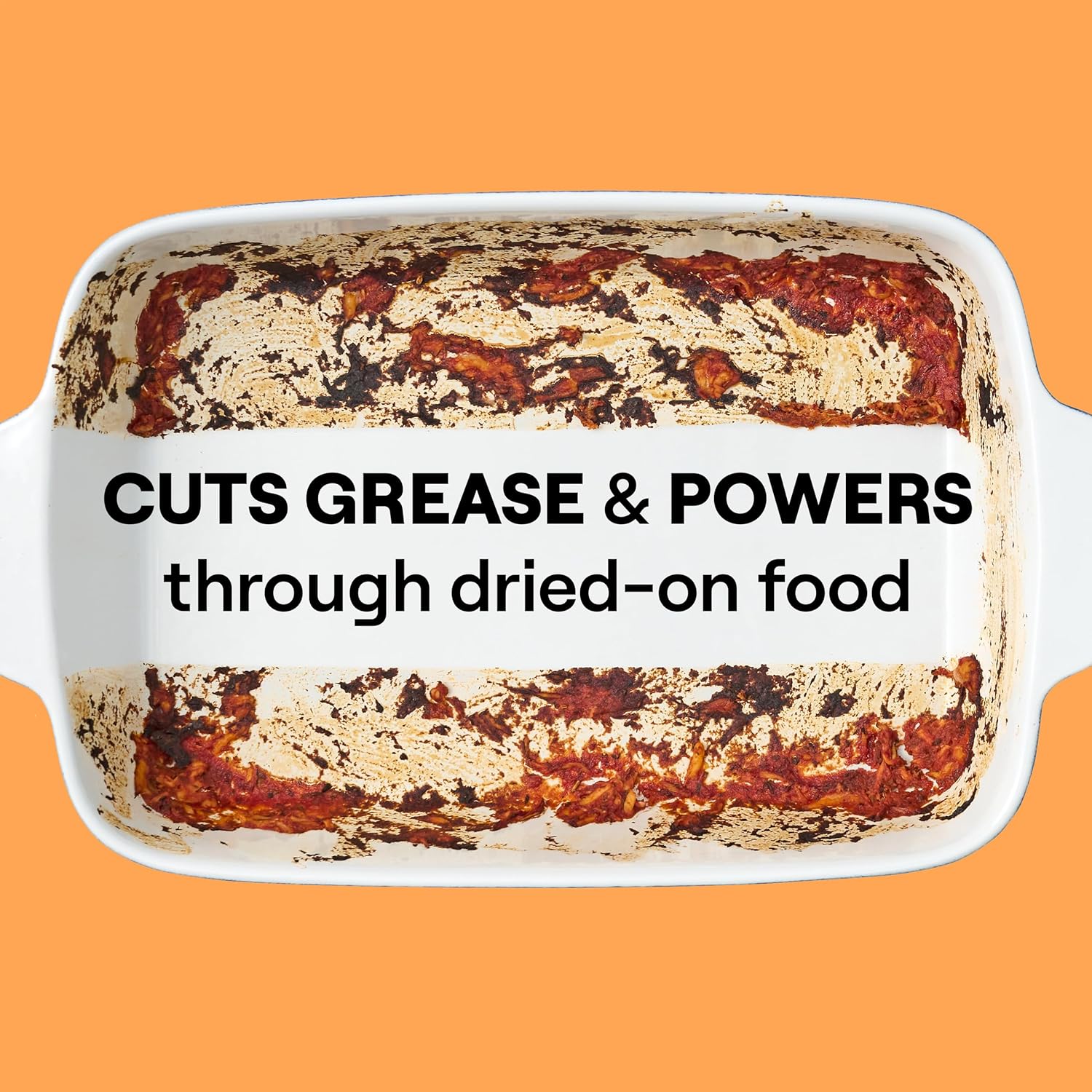 • Plant-based formula liquid soap fights grease and powers through tough, dried-on food