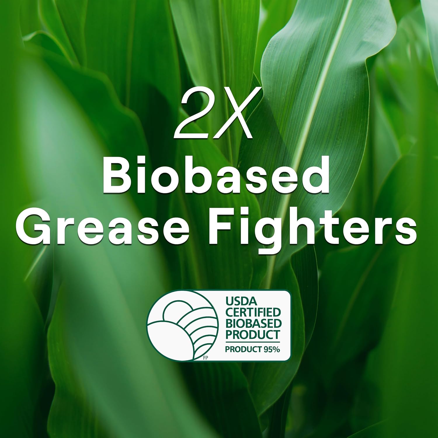 • Plant-based formula liquid soap fights grease and powers through tough, dried-on food