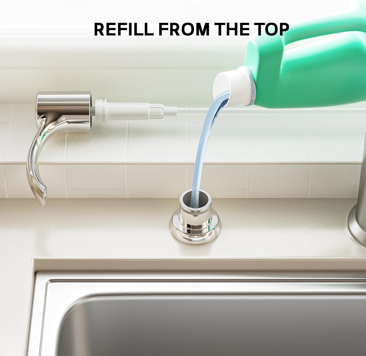 • 【Seamless Coordination】- The dispenser complements most chrome kitchen faucets, enhancing the overall aesthetic of your sink area. It contributes to a neater, cleaner, and more efficient kitchen environment.