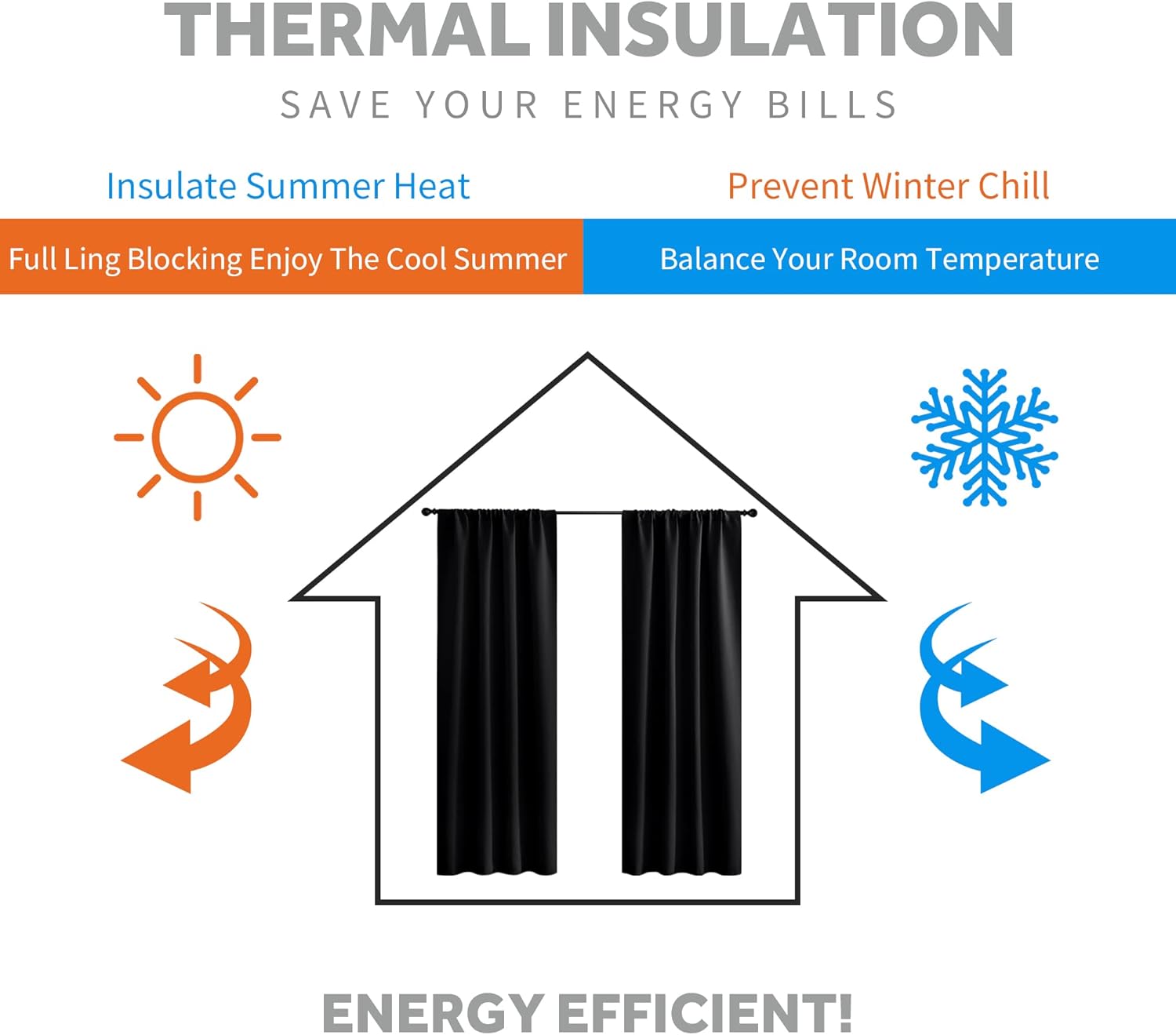 • LIGHT BLOCKING - Curtains block 85-95% sunlight and UV rays (Dark color works better) for maximum privacy and undisturbed sleep. Thermal property of the blackout curtains ensure that the room temperature is regulated. Protect your indoor furniture from directly exposing to the sun.