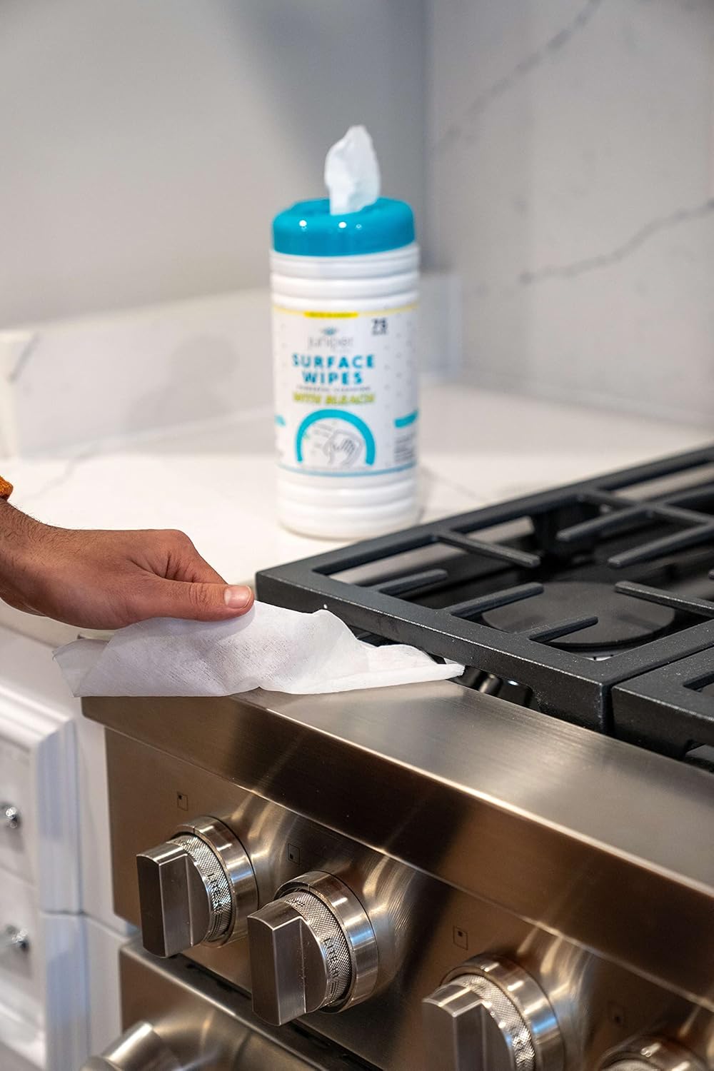 • 【 EFFECTIVE SURFACE CLEANING WIPES】 All purpose cleaner wipes are tough on grease and bathroom soils and cut through grime on a variety of hard surfaces throughout your home including wood, granite, stainless steel and more., Surface cleaning wipes with bleach are perfect for in my kitchen and in my bathrooms. In the bathrooms you can take one wipe and quickly wipe ​areas down throughout the day and In the kitchen, you can use these for wipe down my counter tops.