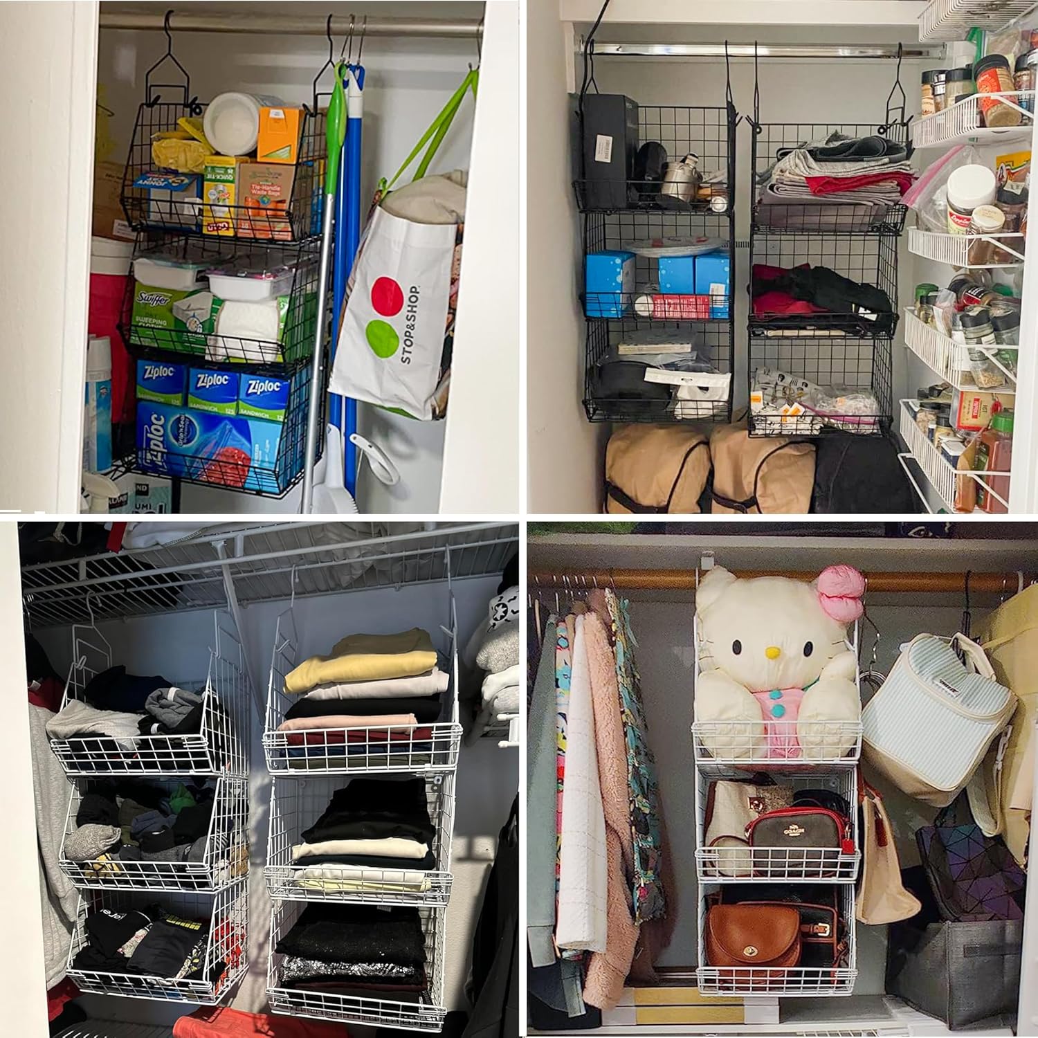 - ⚡ Versatile Setup – Use 1 Tier or Stack All 3! Customize your storage in seconds! Use a single basket as a standalone organizer, or stack all 3 tiers (secured with included screws) for vertical space-saving. The 1.65" hook installs tool-free on any rod—ideal for closets, laundry rooms, or garages. Mix and match to fit your needs!