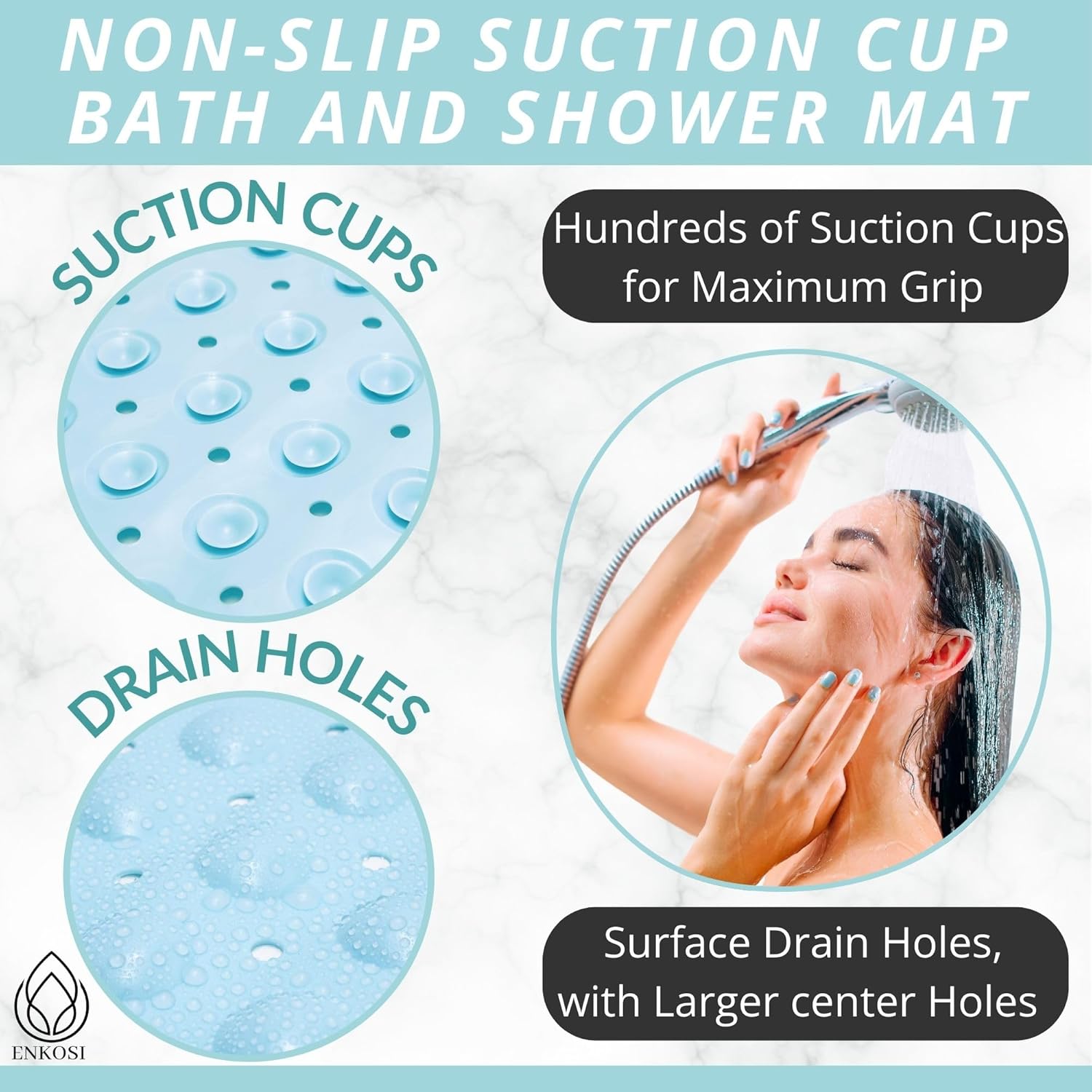 ENKOSI Bath Mat - Large Non Slip Bathtub & Shower Mat - Extra Long 40 x 16 Inch Bathroom Mats for Tub Nonslip Anti Slip Bathmats (40x16 Light Blue 1-Pack)