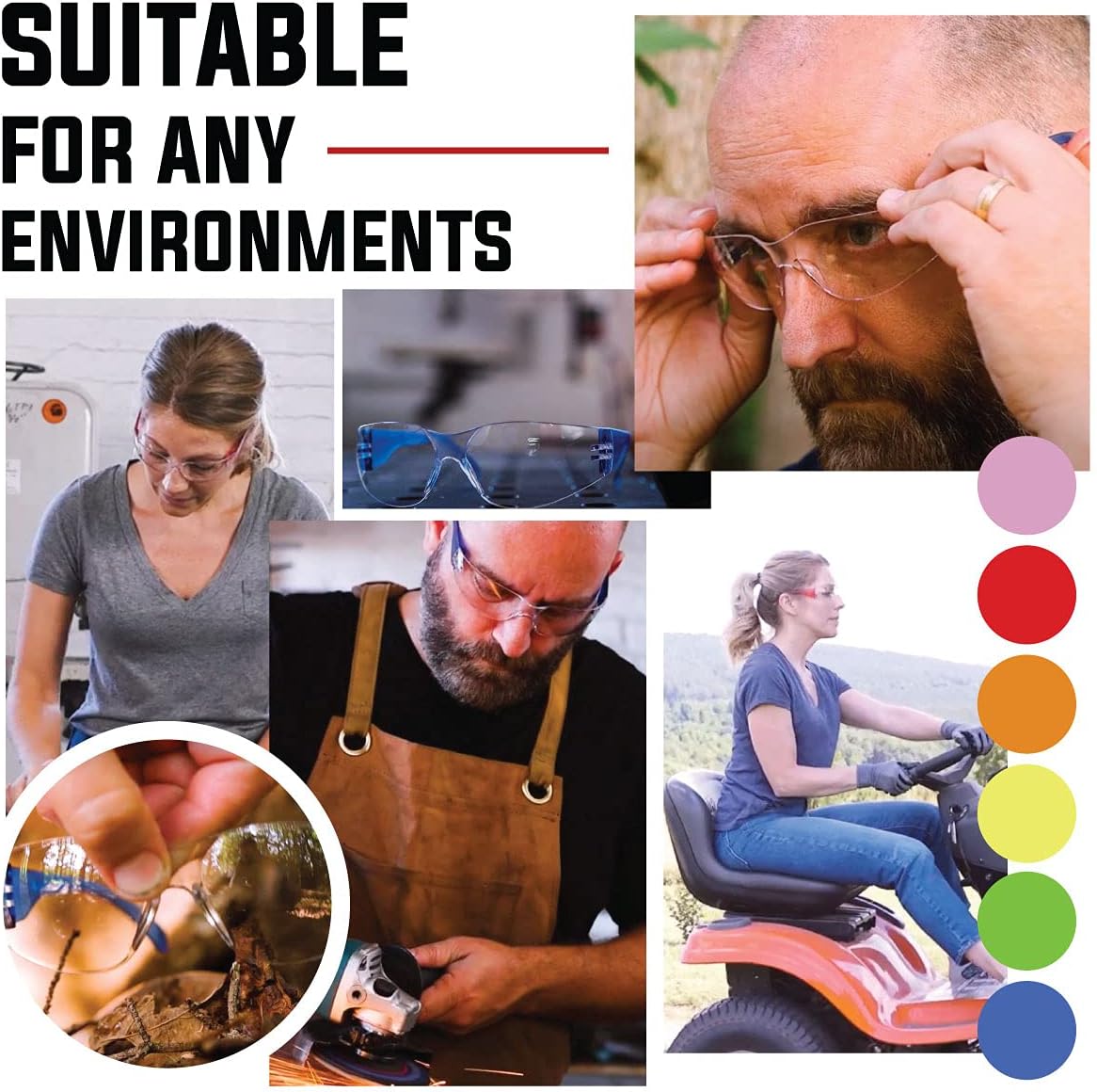 • Anti-Scratch: Full coverage and Scratch Resistant coating for the best protection for your eyes and for the maintenance of the glasses. These safety glasses for men or for women are designed for all around visibility and have a high level of direct and peripheral eye protection from flying particles or debris. Exceeds ANSI Z87.1 standards, embossed on the temple.